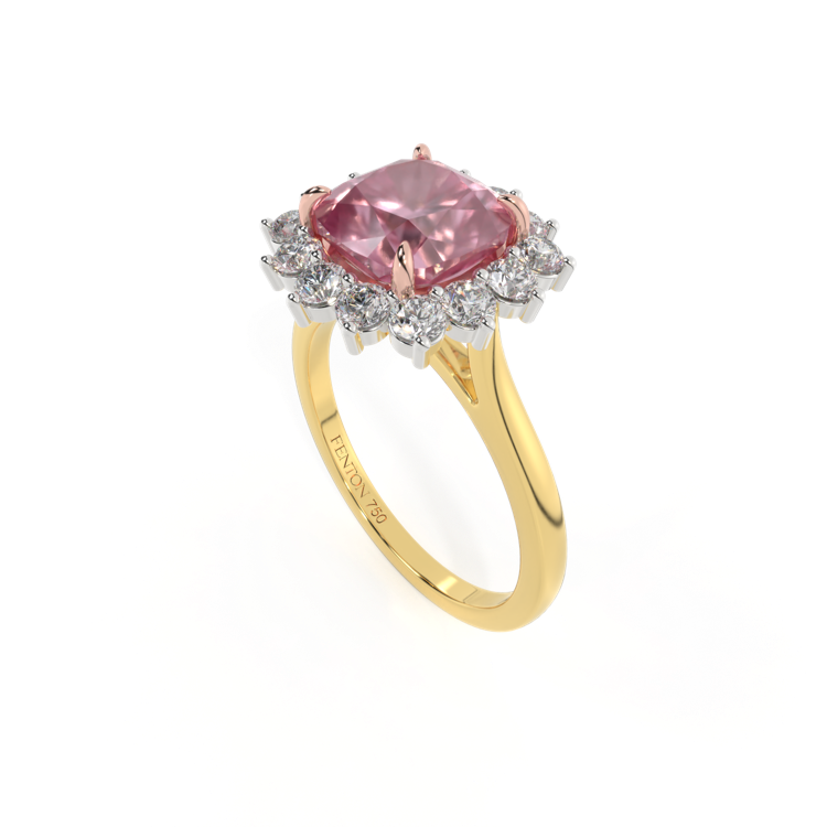 Star Cushion Pink Sapphire 18K Yellow Gold Ring
