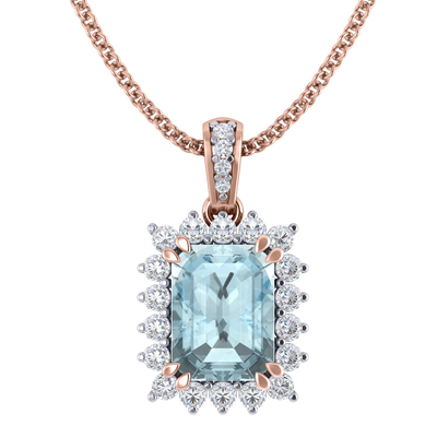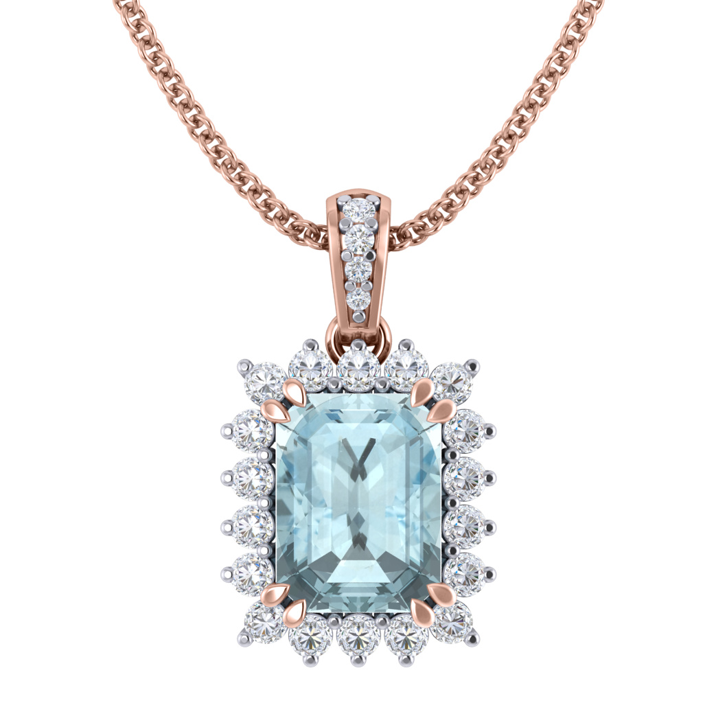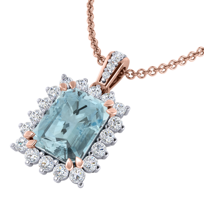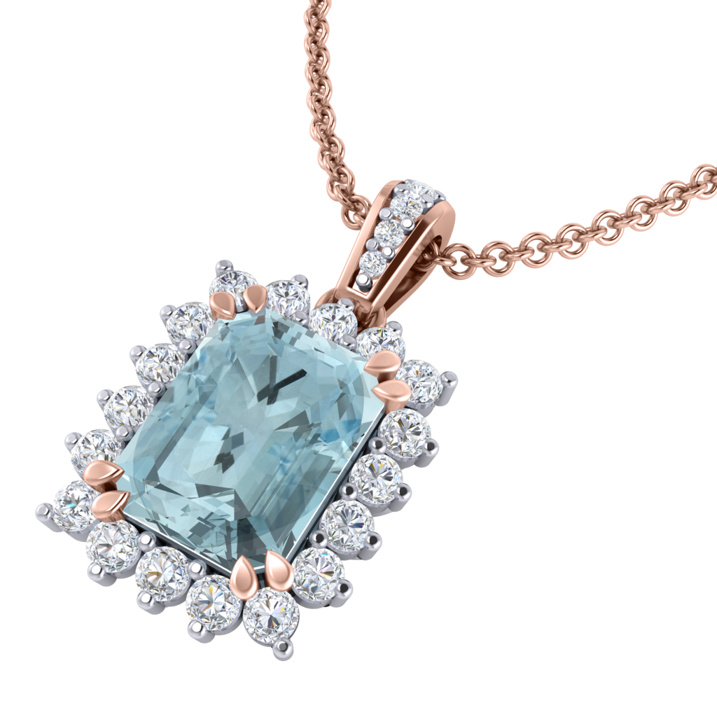 Sparkle from night to day with your Aquamarine Star Pendant Necklace. This pendant necklace features a single G/H colour and VS clarity diamond halo and sparkling diamond-encrusted bale holding your Emerald cut Aquamarine stone.
