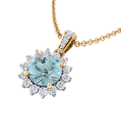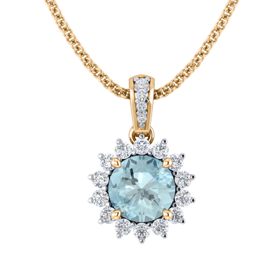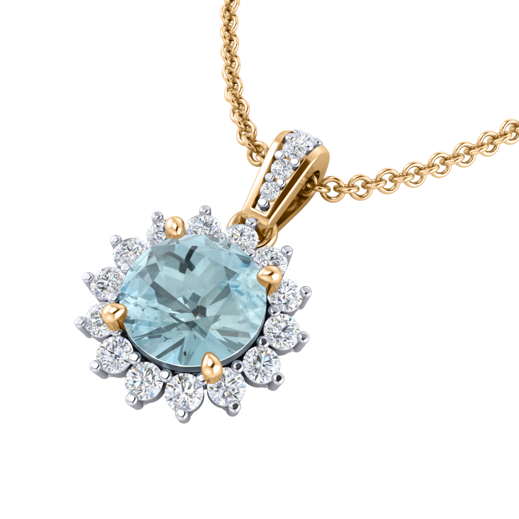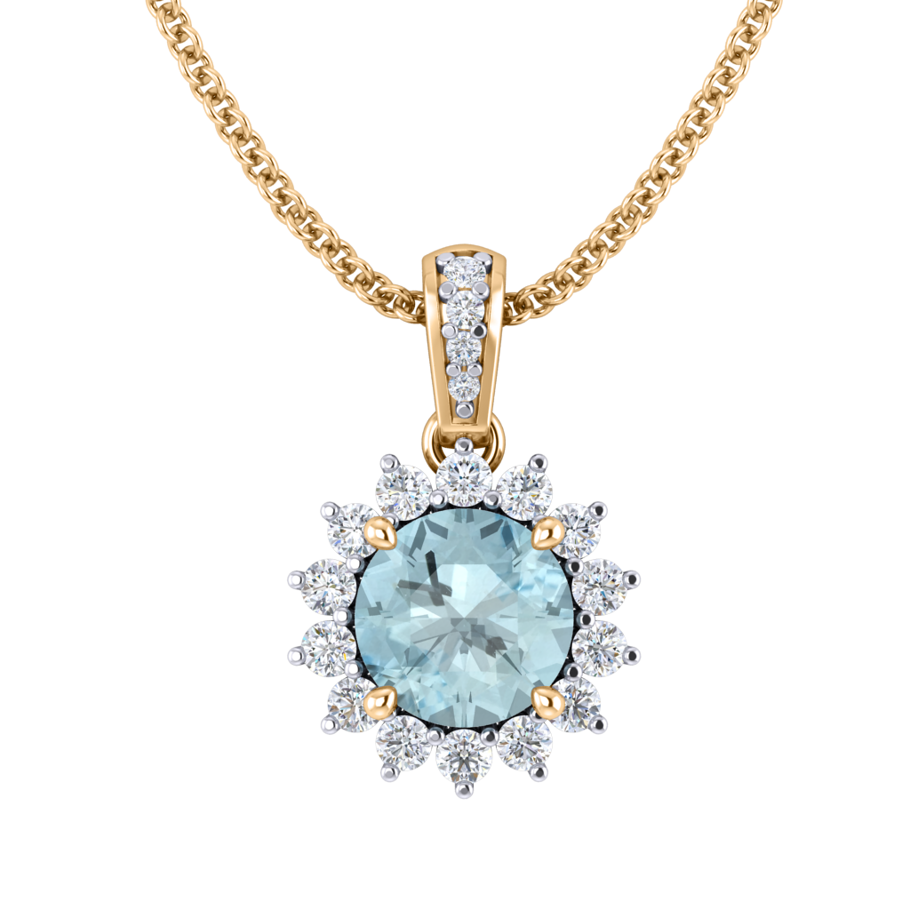 Sparkle from night to day with your Aquamarine Star Pendant Necklace. This pendant necklace features a single G/H colour and VS clarity diamond halo and sparkling diamond-encrusted bale holding your Round cut Aquamarine stone.