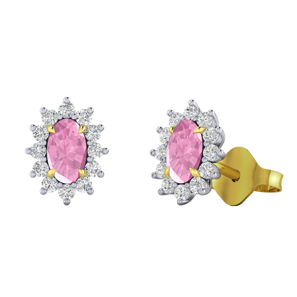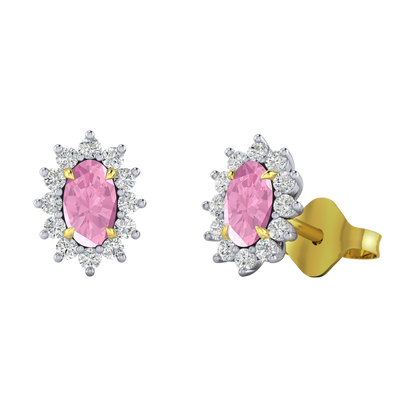 Star Stud Oval Pink Sapphire 18K Yellow Gold Earrings