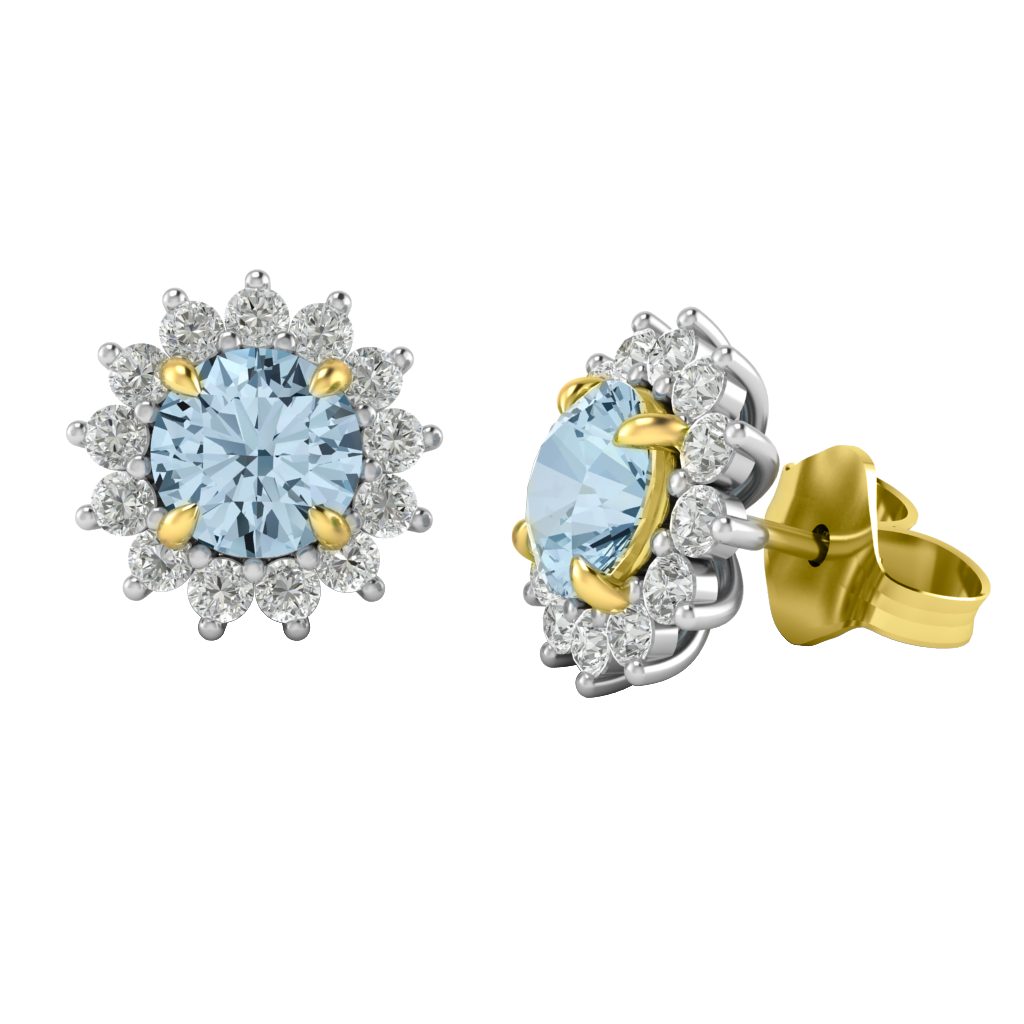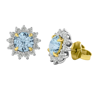 It's time to get starry eyed for the Star Stud Earrings. Drawing on celestial inspiration, this is a timeless design which is sure to enchant. Featuring a sparkling centre Aquamarine stone in Round, this design is complimented by a halo of triple prong-set G/H VS diamonds, which create the majestic star aesthetic. Set in solid, recycled 18K Yellow Gold, the Star Stud earrings are the perfect choice to add to your jewellery collection and to elevate any outfit.