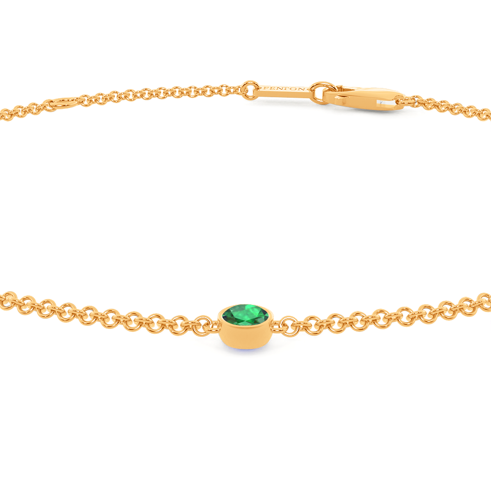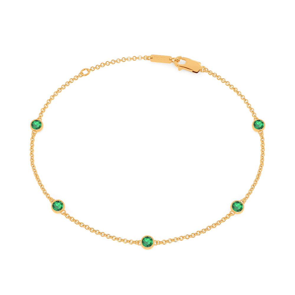 Our Five Stone Bezel Emerald Bracelet brings out the beauty in minimalist elegance. The classic 18K Yellow Gold chain carries five glistening 3mm round-cut Emerald stones each secured in a modern bezel setting that create a perfect everyday bracelet style and effortless, sparkling statement on your wrist.