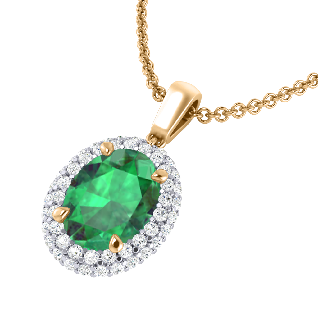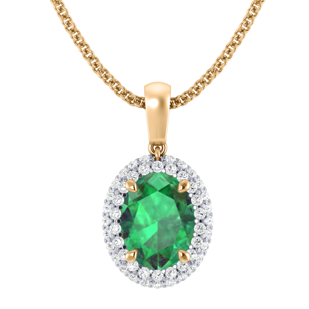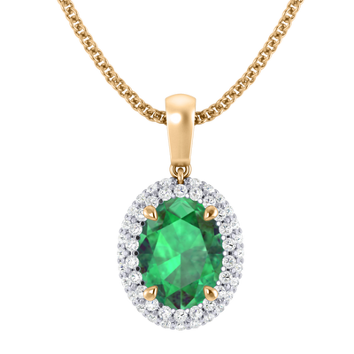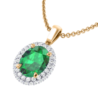 Wear your Emerald close to your heart with our Vintage Pendant Necklace. The sparkling Oval cut Emerald pedant is framed with a double halo of G/H colour and VS clarity diamonds giving the necklace its much-loved vintage aesthetic inspired by 18th century jewellery pieces.