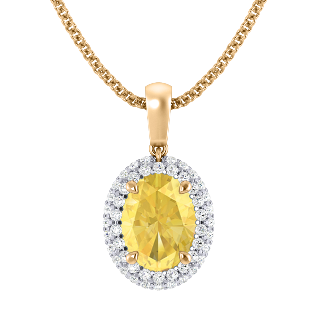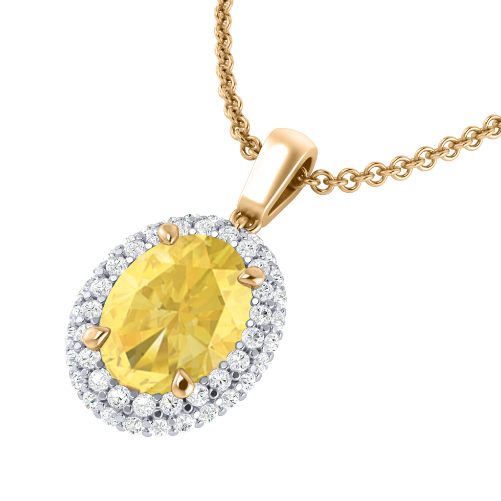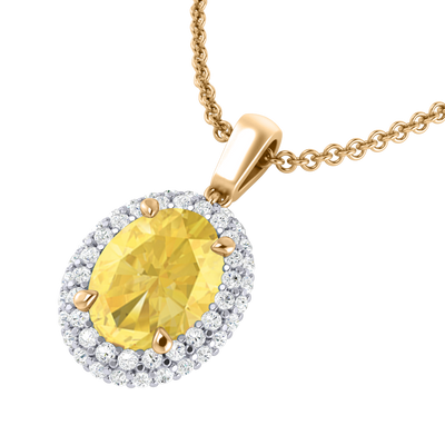 Wear your Yellow Sapphire close to your heart with our Vintage Pendant Necklace. The sparkling Oval Yellow Sapphire pedant is framed with a double halo of G/H colour and VS clarity diamonds giving the necklace its much-loved vintage aesthetic inspired by 18th century jewellery pieces.