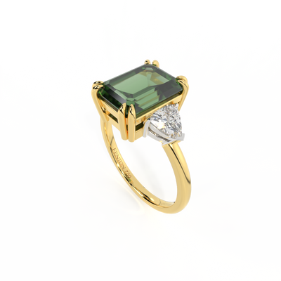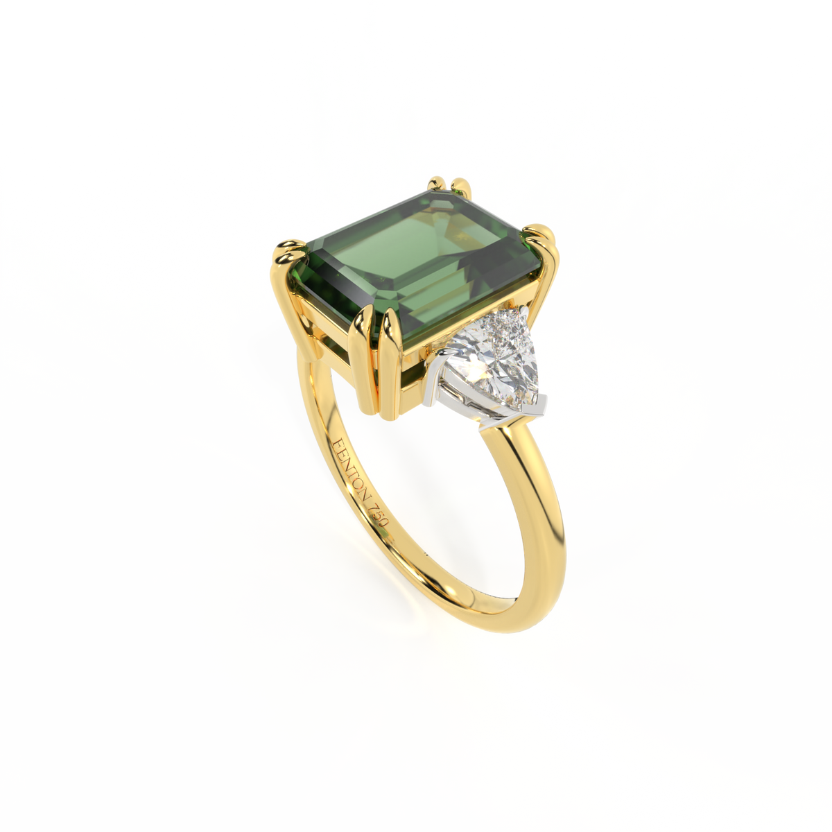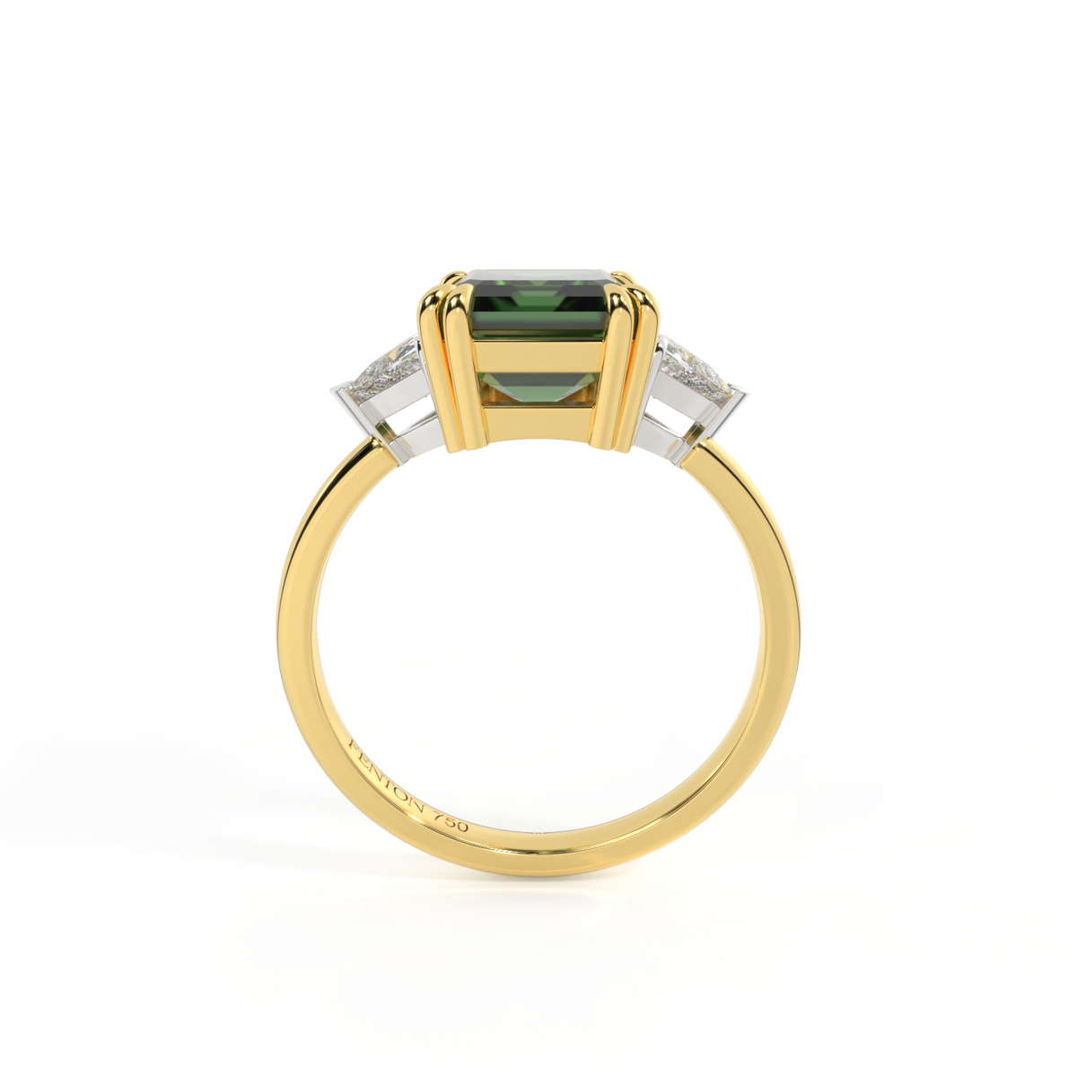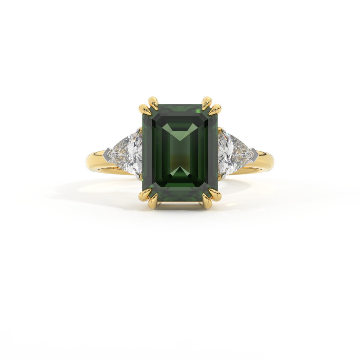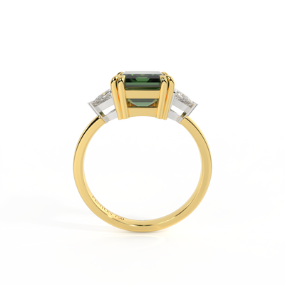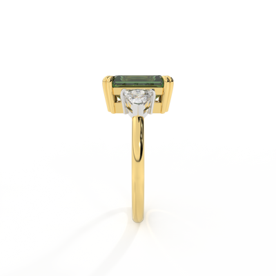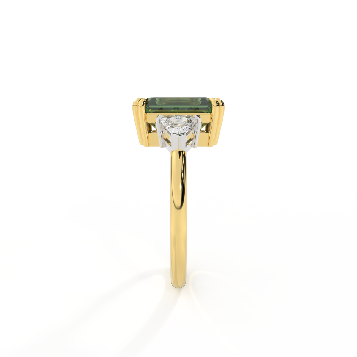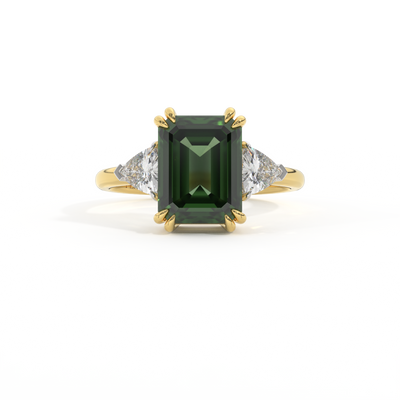 Trilogy Emerald Green Sapphire 18K Yellow Gold Ring