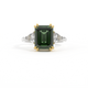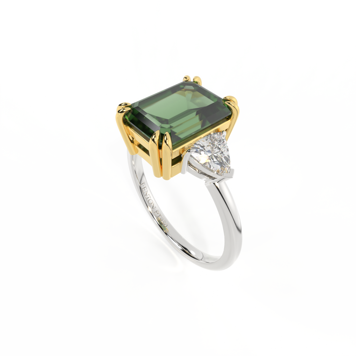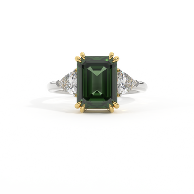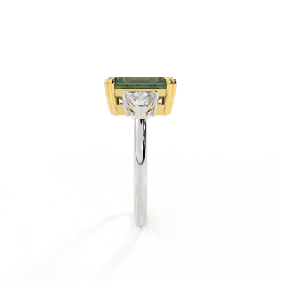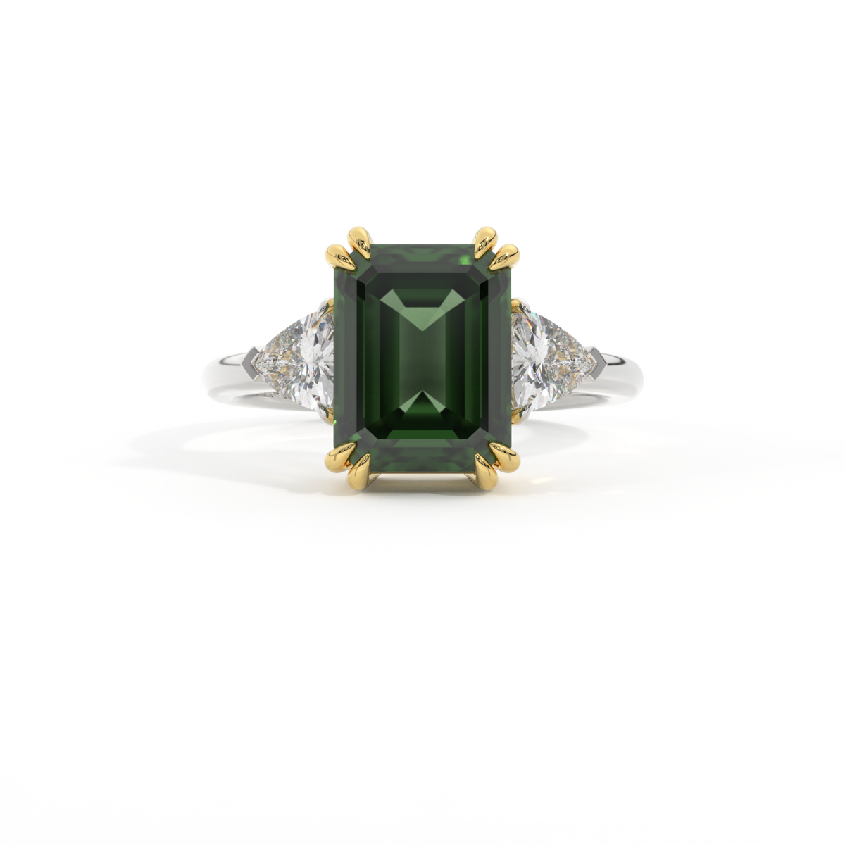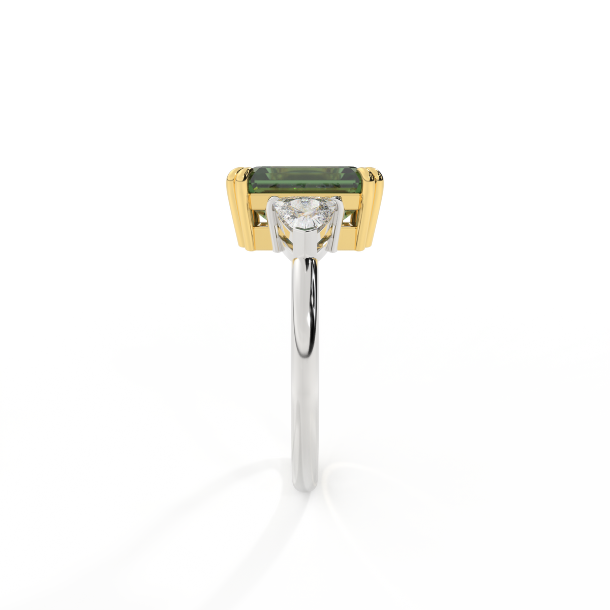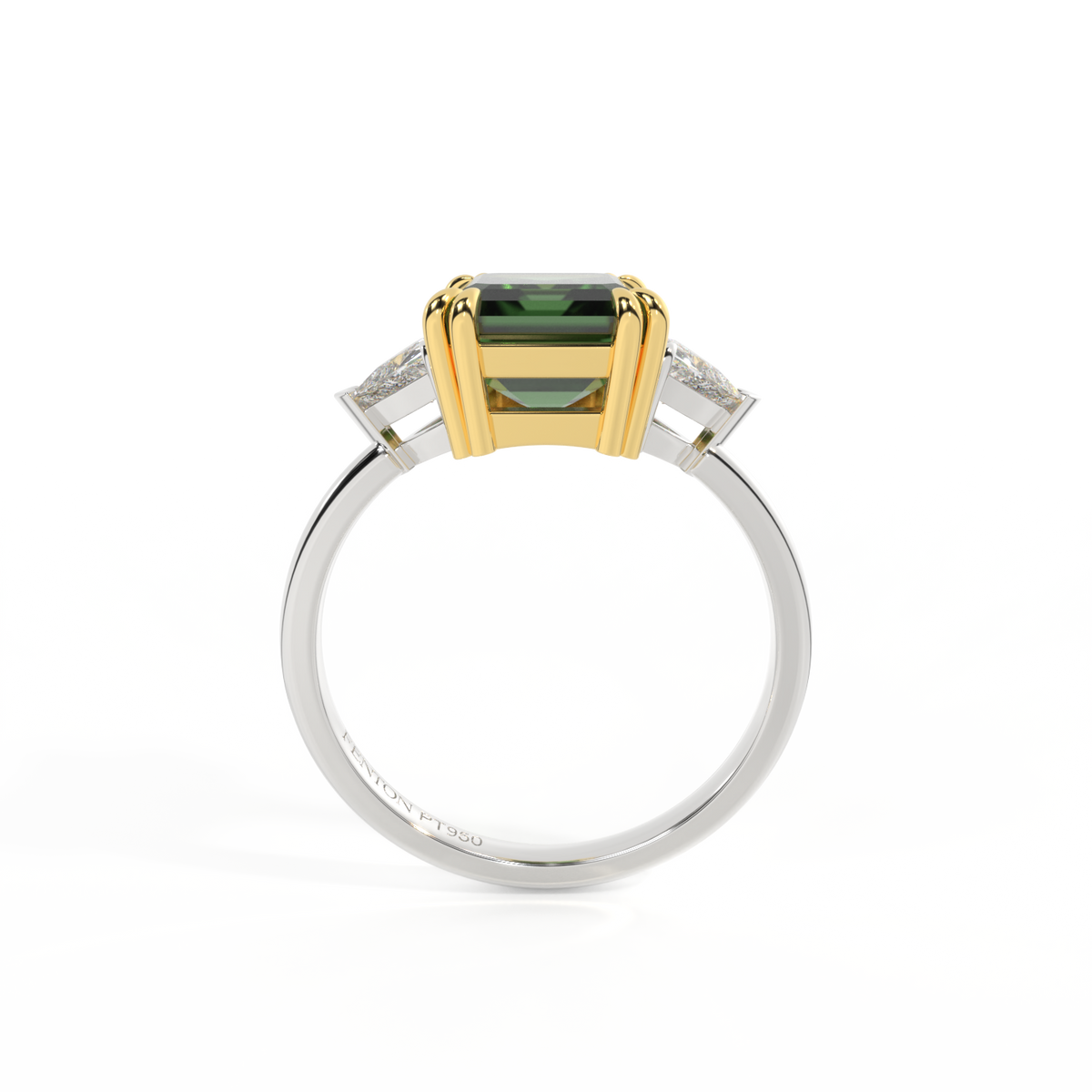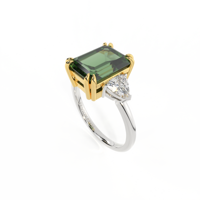 All of our rings are available in blue sapphire, green sapphire, emerald, pink sapphire, yellow sapphire, garnet and aquamarine. We offer three metals, 18K rose gold, 18K yellow gold and platinum. The centre stones are available in four cuts, round, cushion, oval and emerald cut and five sizes for each cut and style.