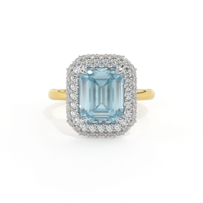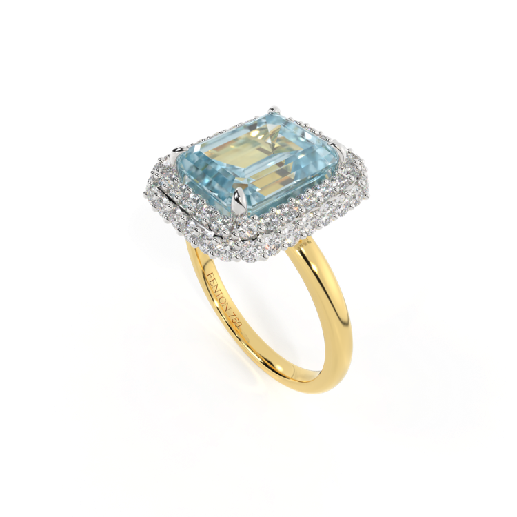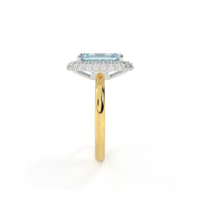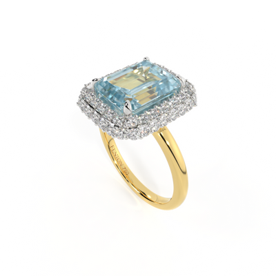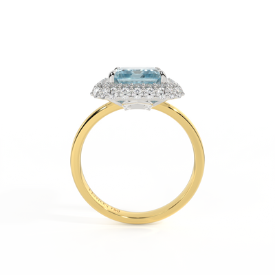 Vintage Emerald Aquamarine 18K Yellow Gold Ring