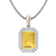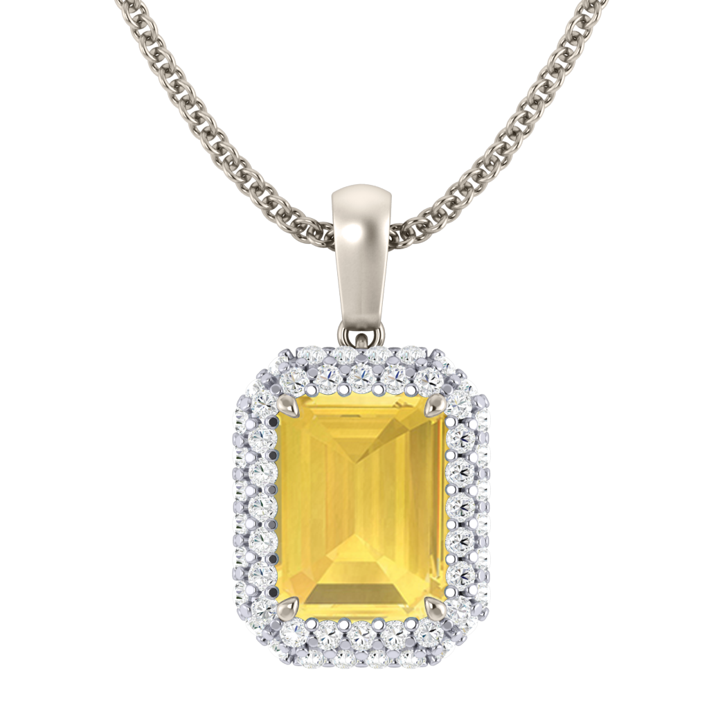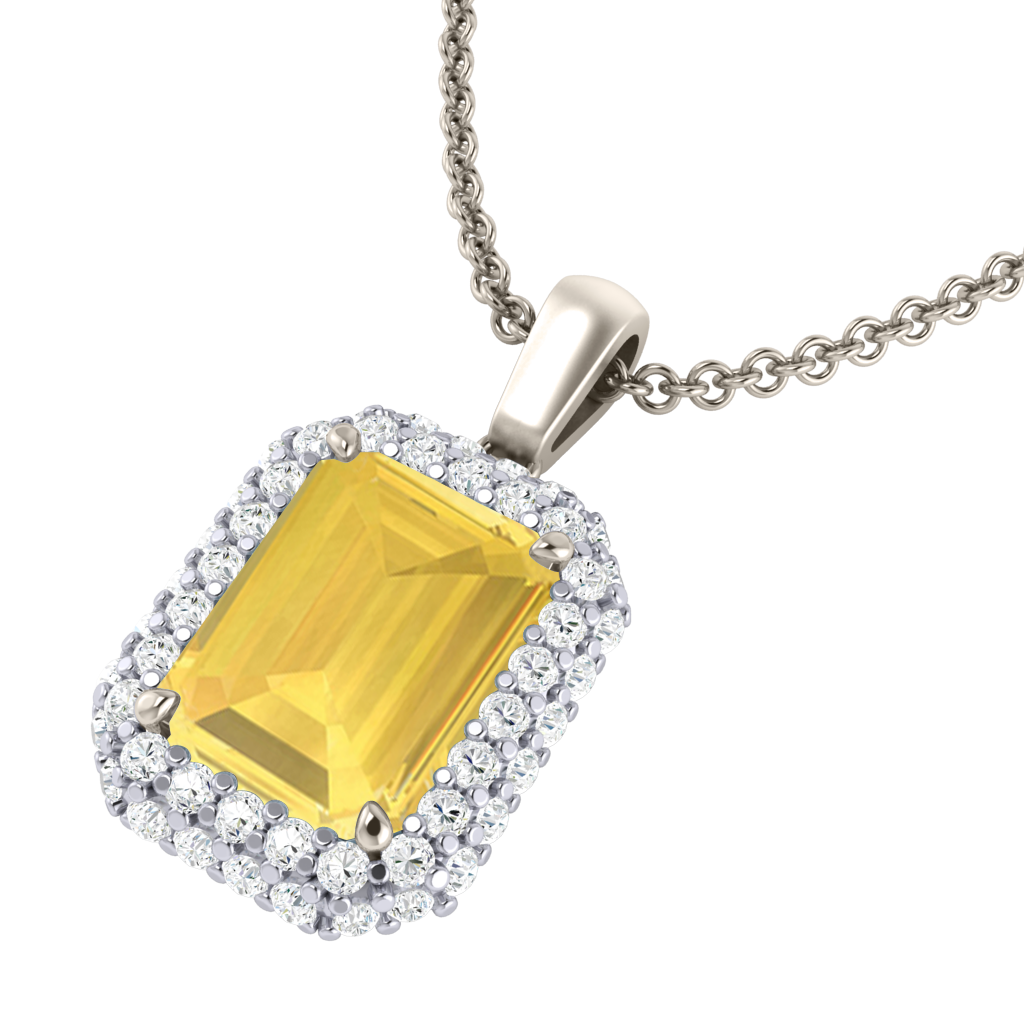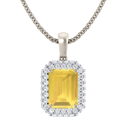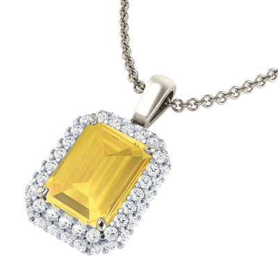 Wear your Yellow Sapphire close to your heart with our Vintage Pendant Necklace. The sparkling Emerald cut Yellow Sapphire pedant is framed with a double halo of G/H colour and VS clarity diamonds giving the necklace its much-loved vintage aesthetic inspired by 18th century jewellery pieces.