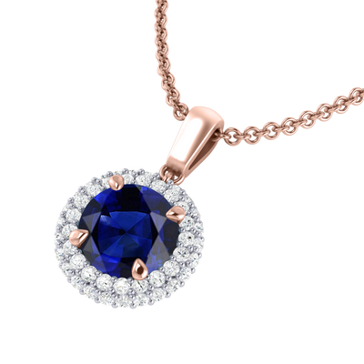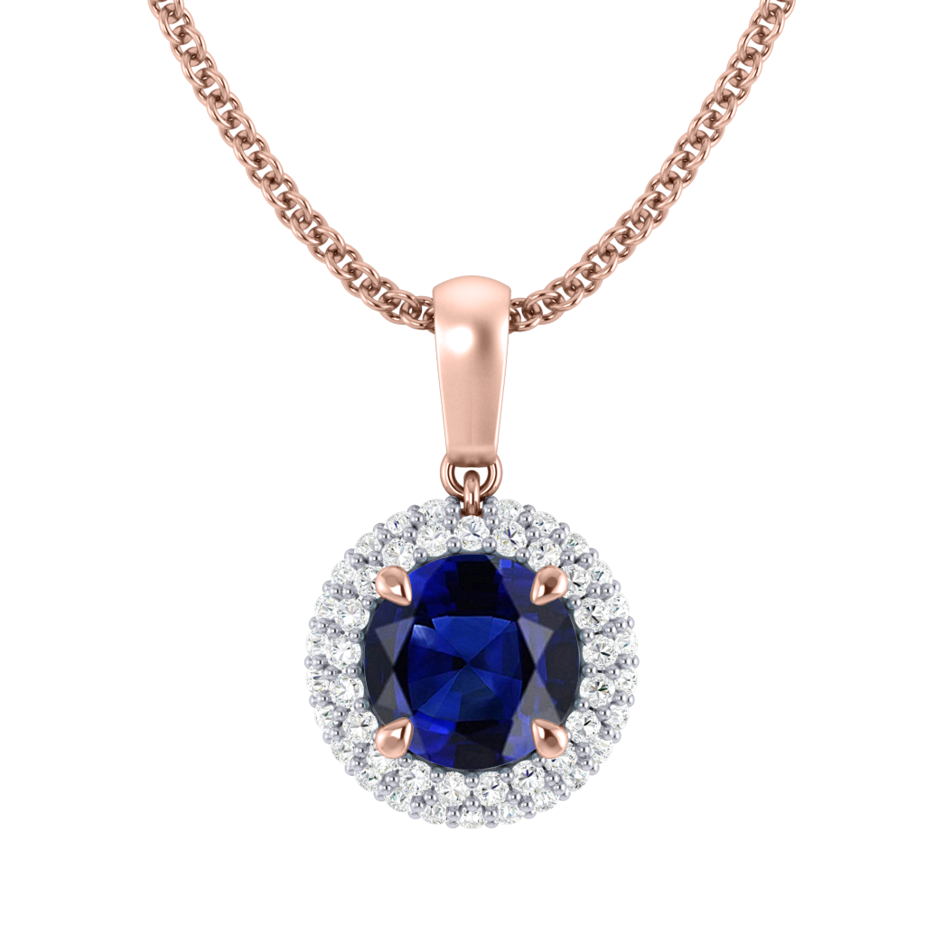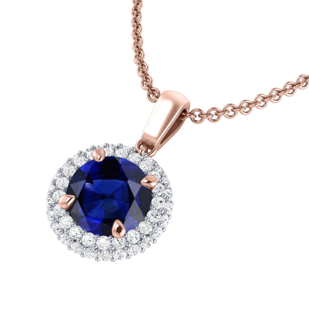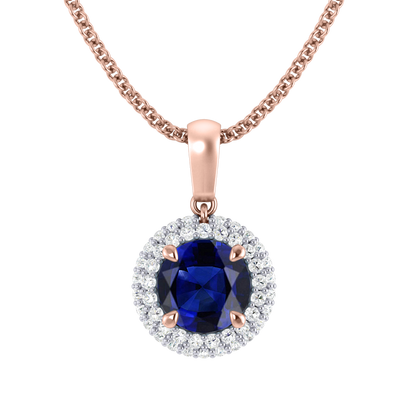 Wear your Blue Sapphire close to your heart with our Vintage Pendant Necklace. The sparkling Round cut Blue Sapphire pedant is framed with a double halo of G/H colour and VS clarity diamonds giving the necklace its much-loved vintage aesthetic inspired by 18th century jewellery pieces.