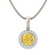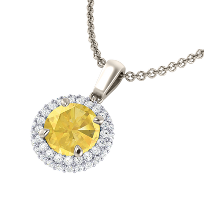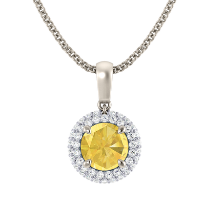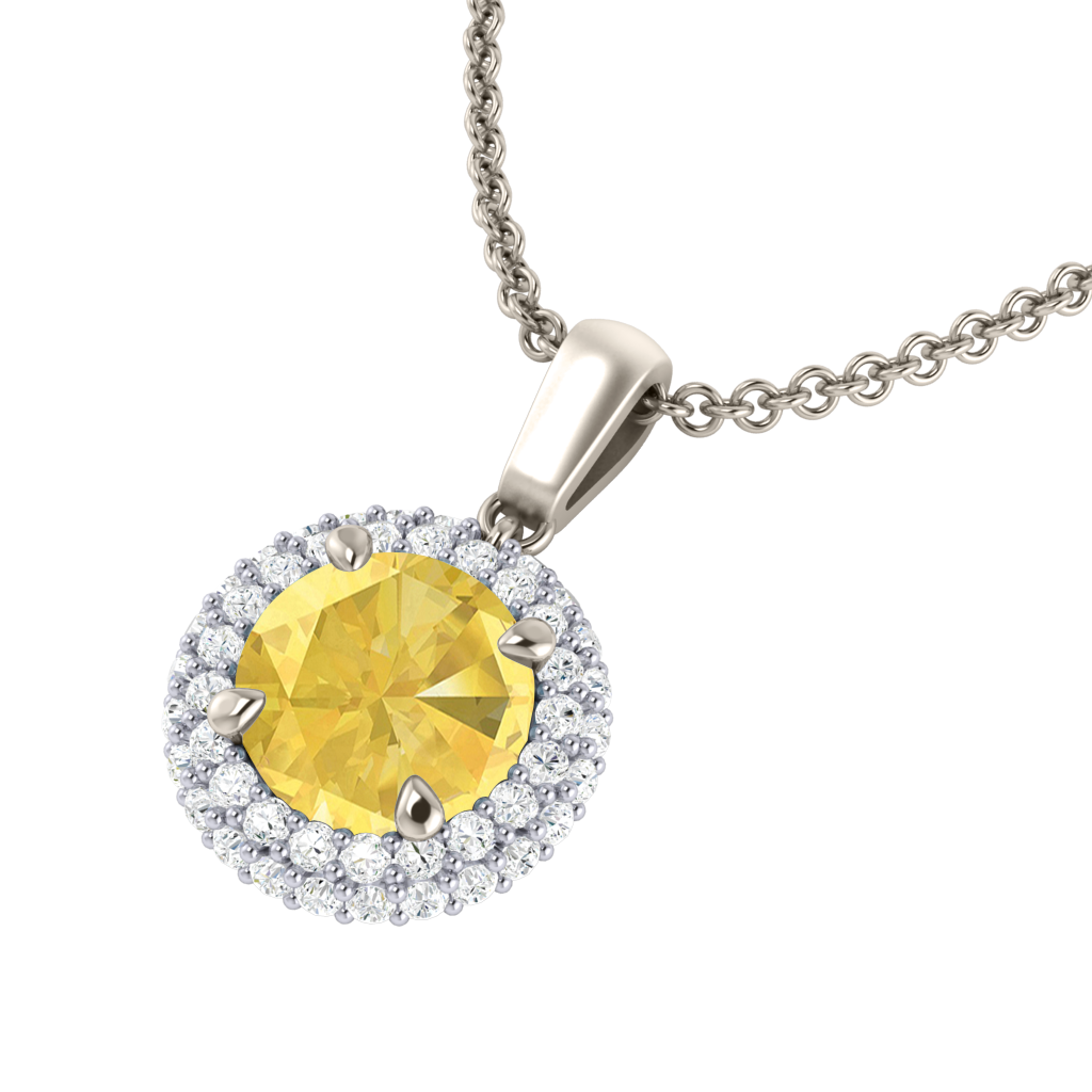 Wear your Yellow Sapphire close to your heart with our Vintage Pendant Necklace. The sparkling Round cut Yellow Sapphire pedant is framed with a double halo of G/H colour and VS clarity diamonds giving the necklace its much-loved vintage aesthetic inspired by 18th century jewellery pieces.