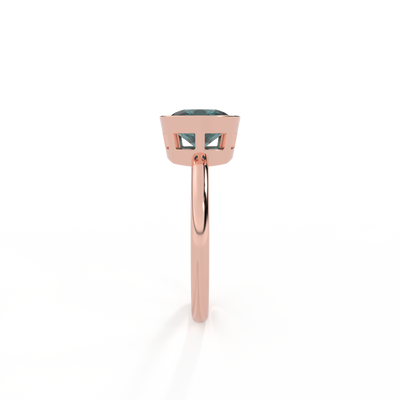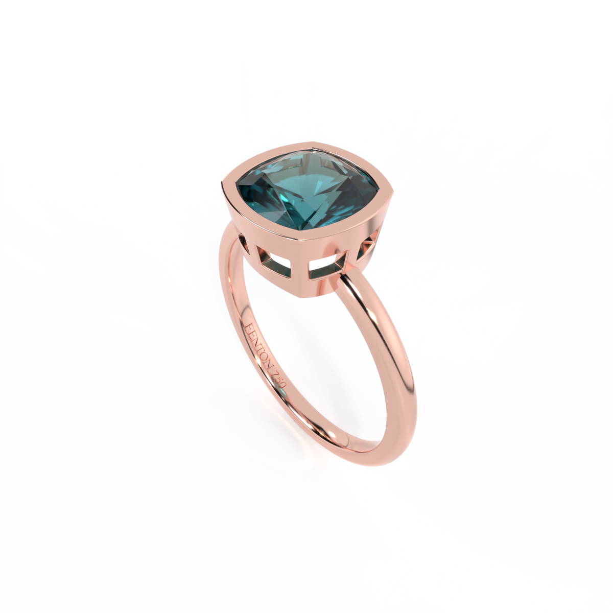 Bezel Cushion Teal Sapphire 18K Rose Gold Ring