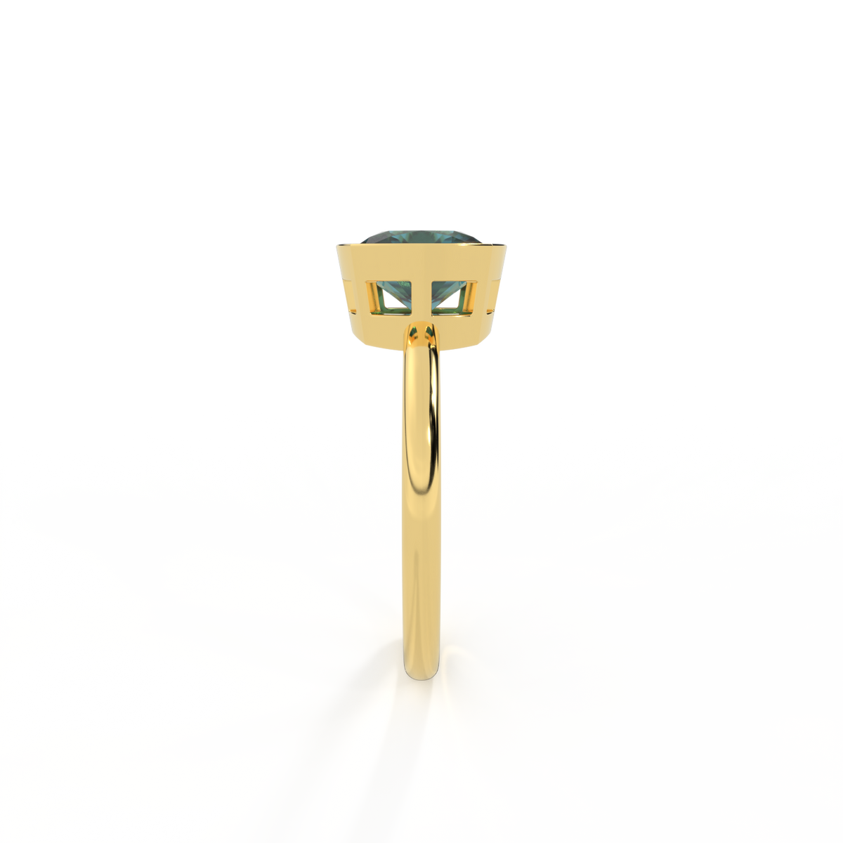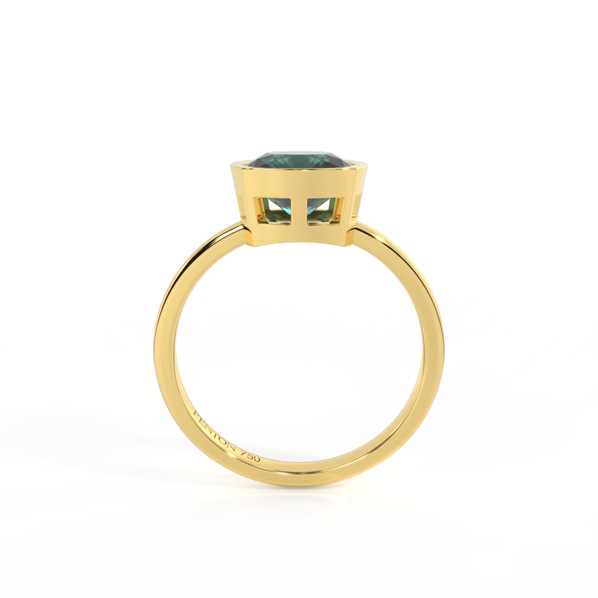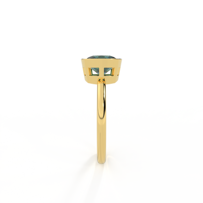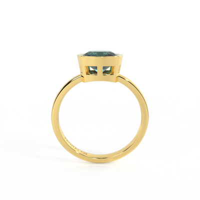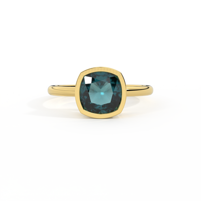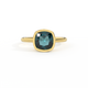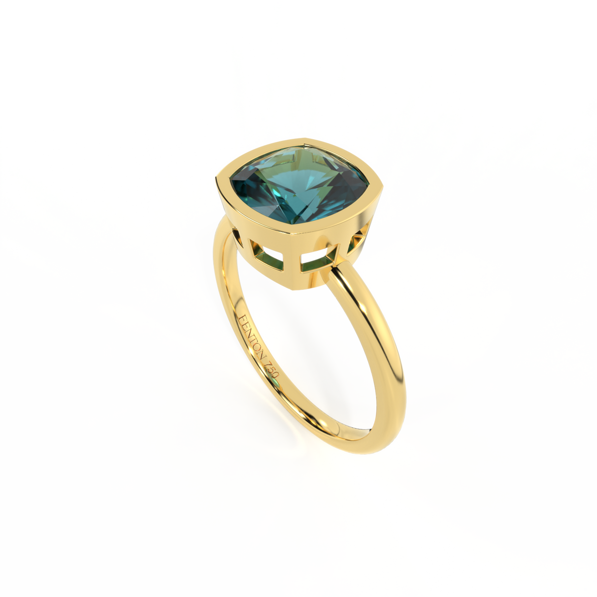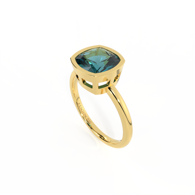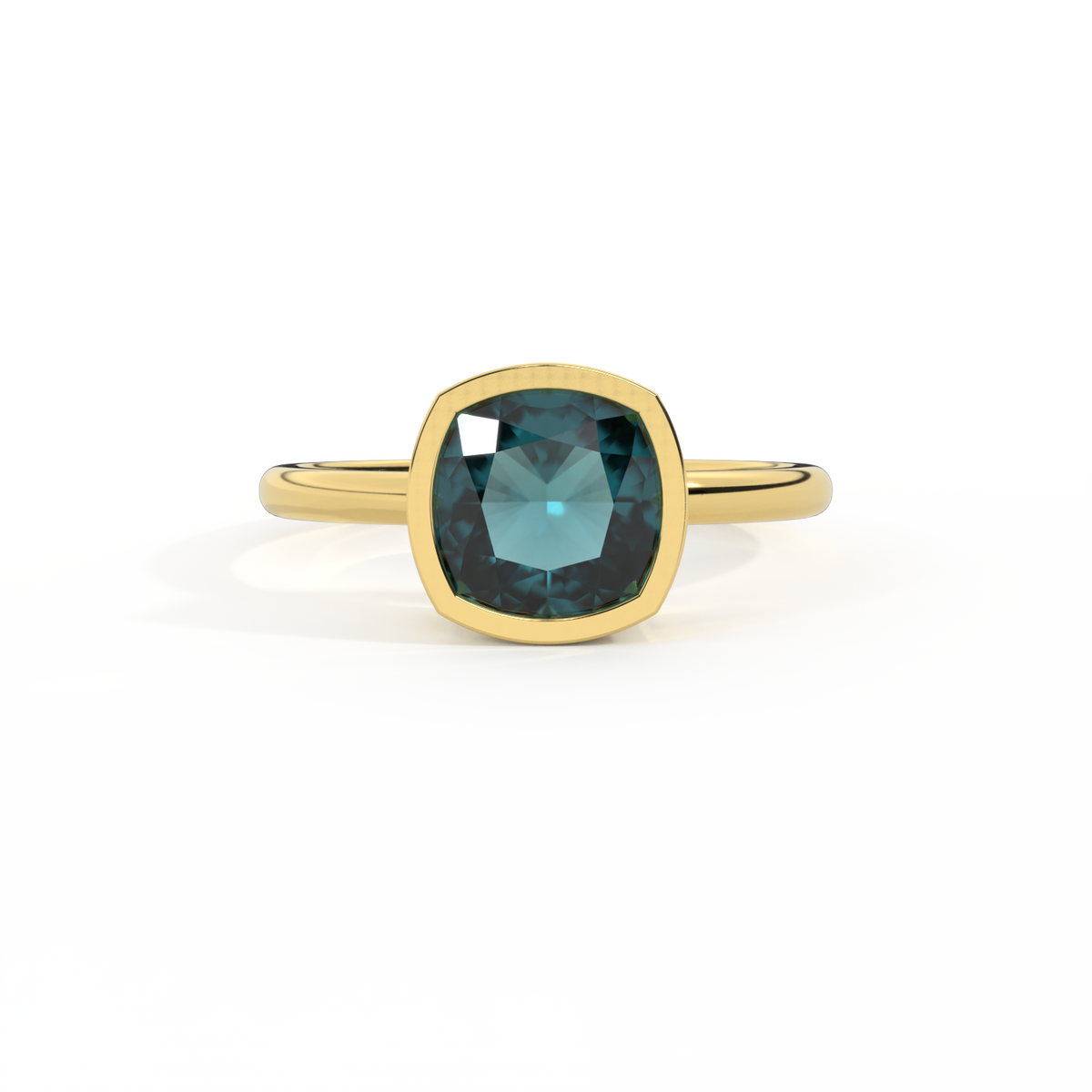 Bezel Cushion Teal Sapphire 18K Yellow Gold Ring