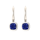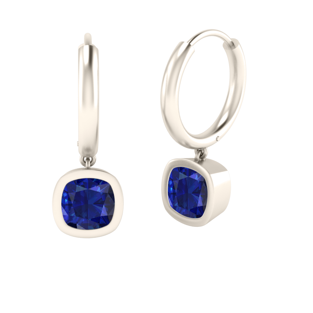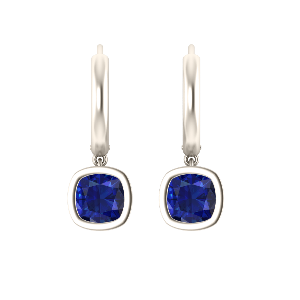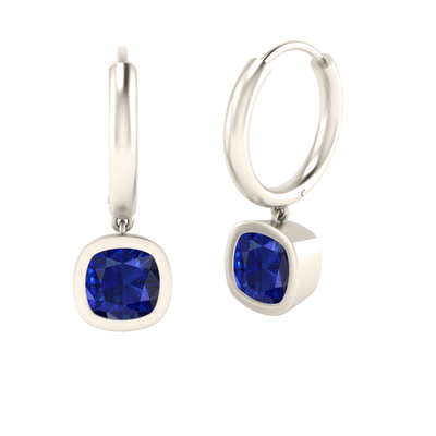 Bezel Drop Cushion Cut Blue Sapphire 18K White Gold Earrings