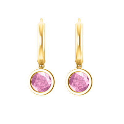 Bezel Drop Round Cut Pink Sapphire 18K Yellow Gold Earrings