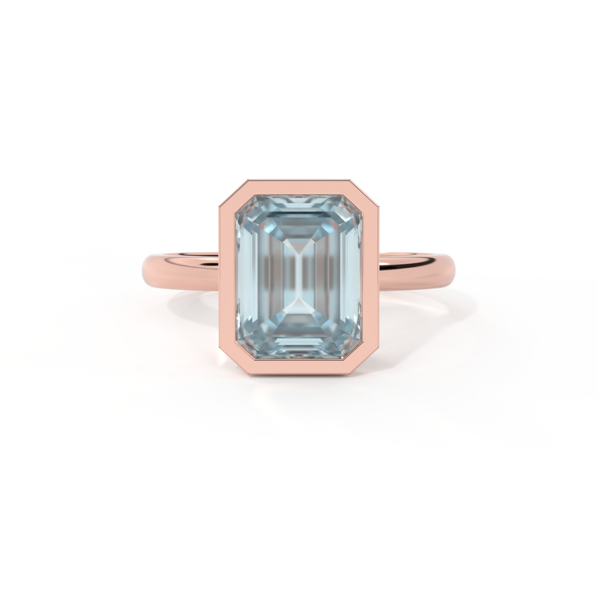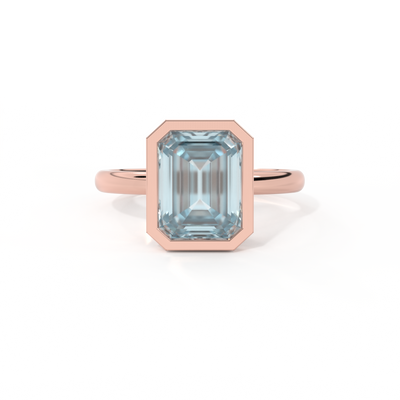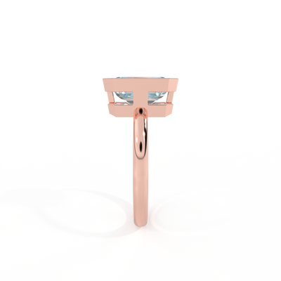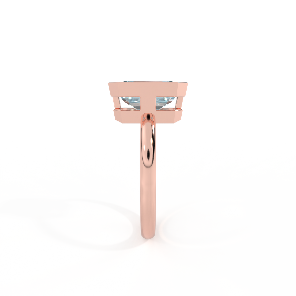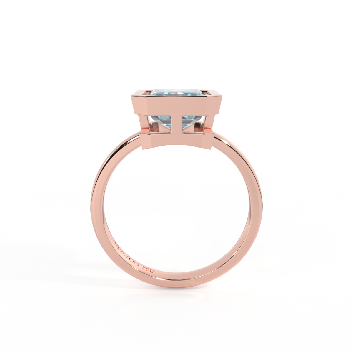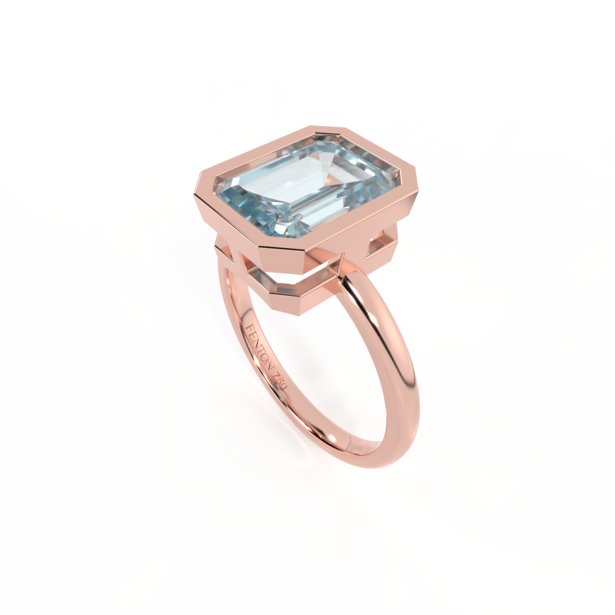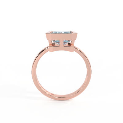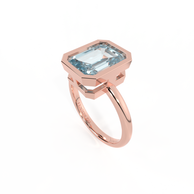 Minimalism meets modernism - the unique characteristics of this Emerald cut Aquamarine are given center stage in The Bezel. A modern take on a solitaire, this style frames the 6mm Aquamarine in a secure custom made setting that's simple and striking at the same time.