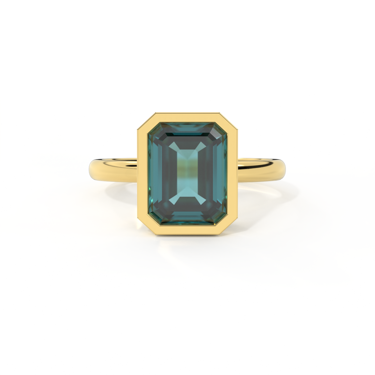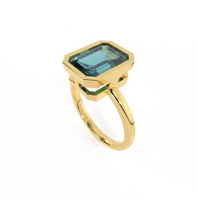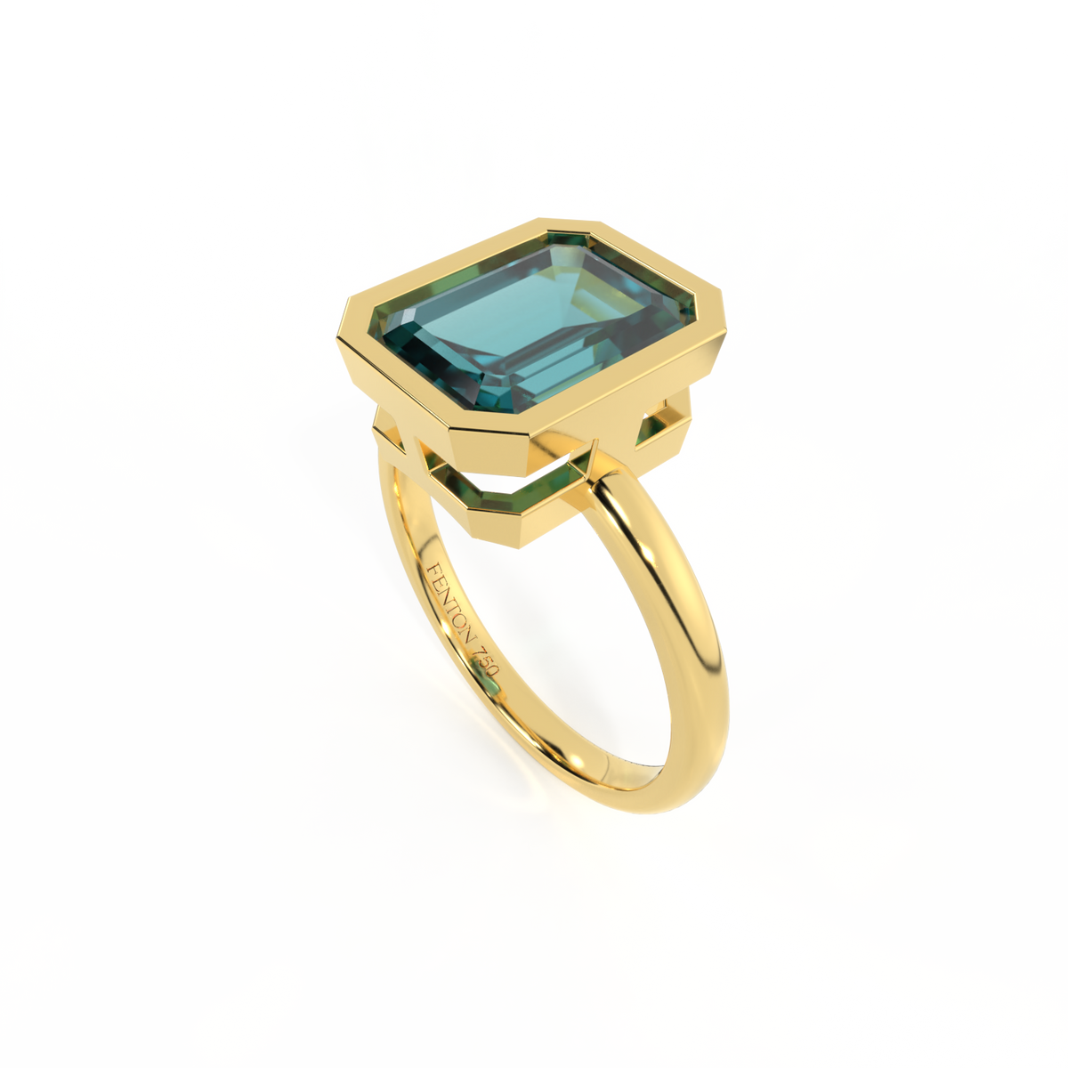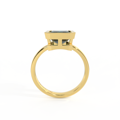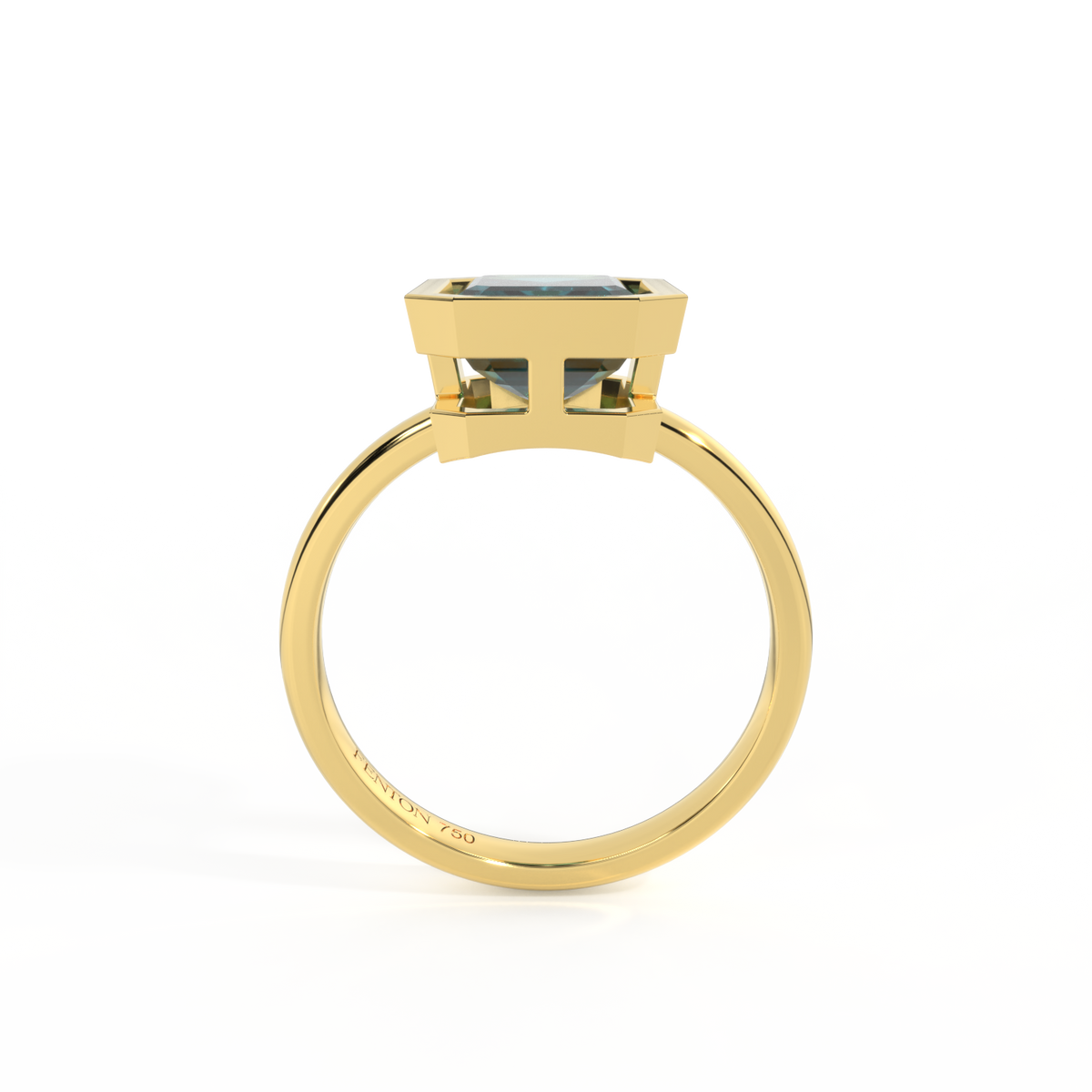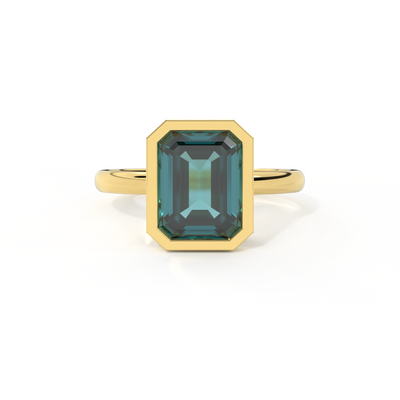 Bezel Emerald Teal Sapphire 18K Yellow Gold Ring