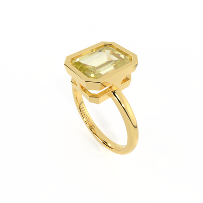 Bezel Emerald Yellow Sapphire 18K Yellow Gold Ring