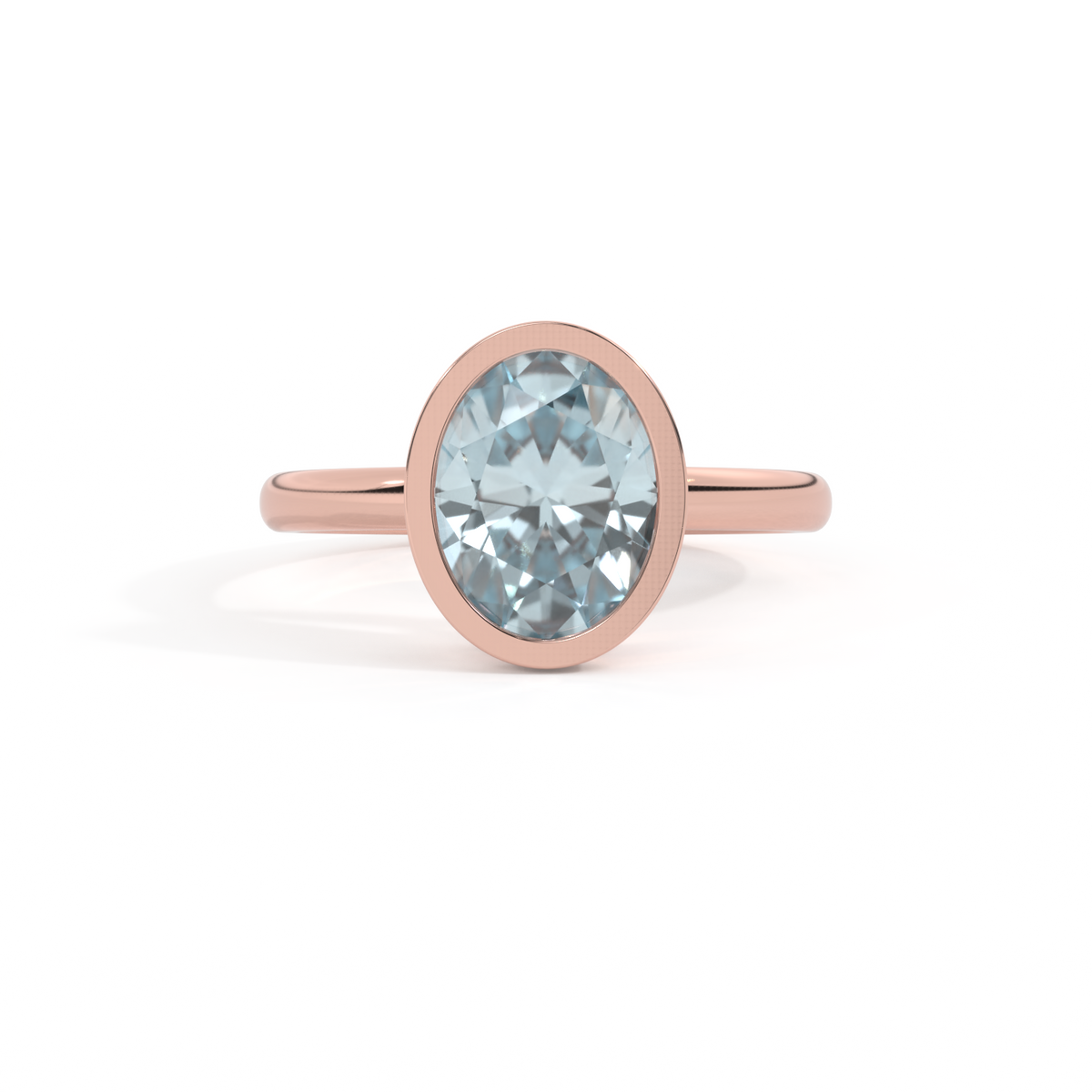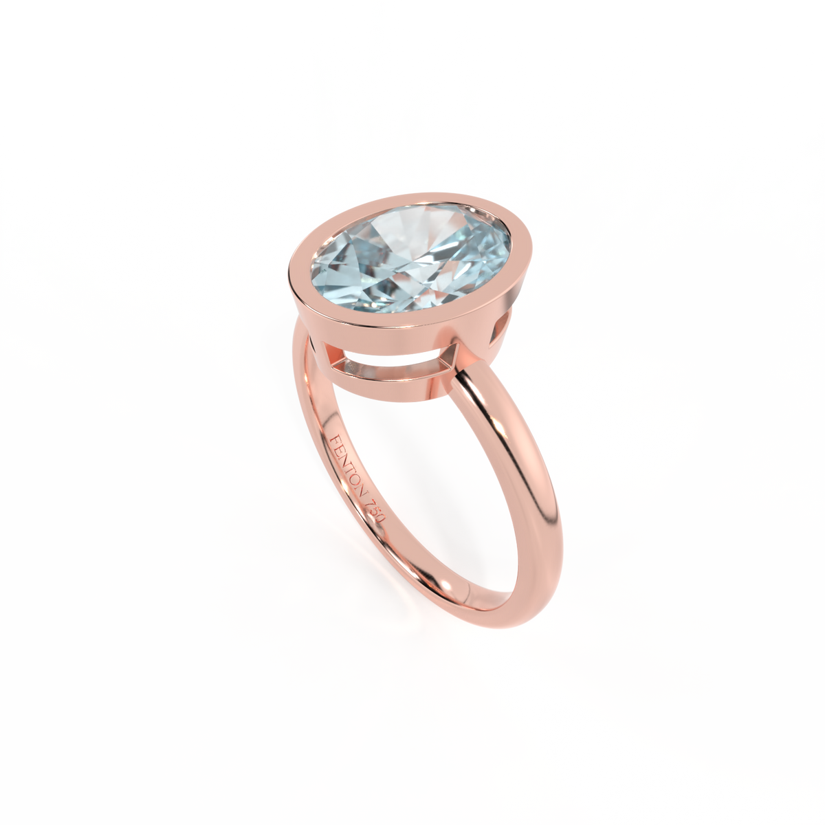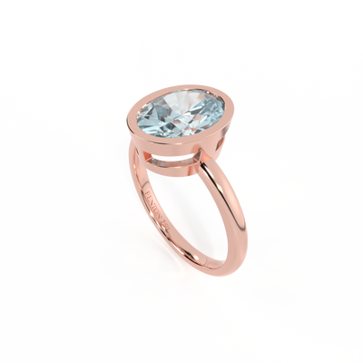 Bezel Oval Aquamarine 18K Rose Gold Ring