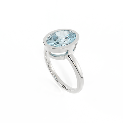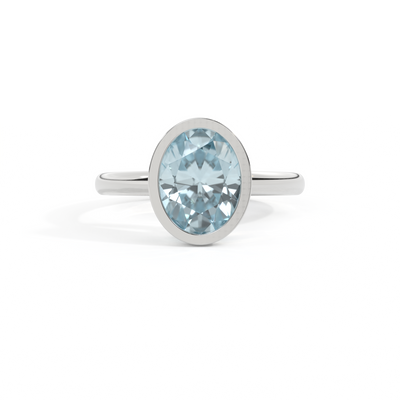 Minimalism meets modernism - the unique characteristics of this Oval cut Aquamarine are given center stage in The Bezel. A modern take on a solitaire, this style frames the 6mm Aquamarine in a secure custom made setting that's simple and striking at the same time.