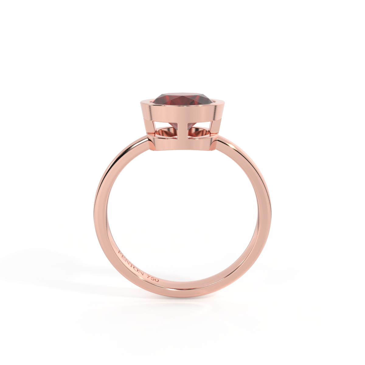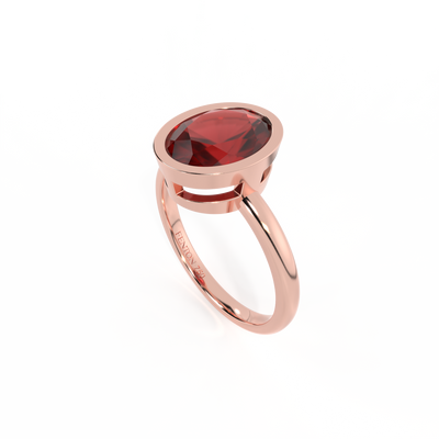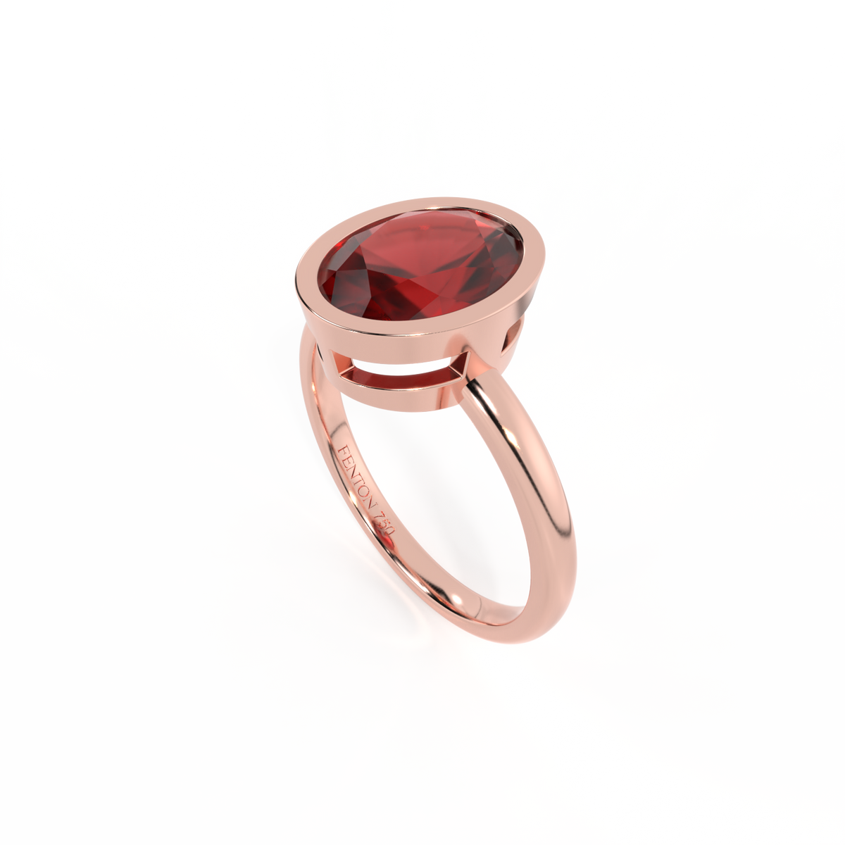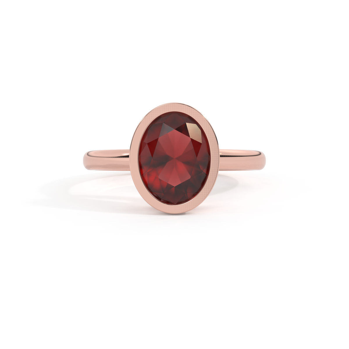 Minimalism meets modernism - the unique characteristics of this Oval cut Garnet are given center stage in The Bezel. A modern take on a solitaire, this style frames the 6mm Garnet in a secure custom made setting that's simple and striking at the same time.