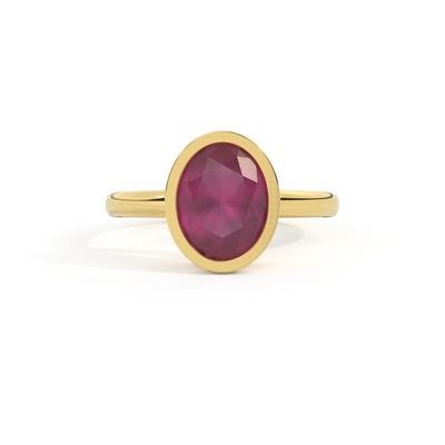 Bezel Oval Ruby 18K Yellow Gold Ring