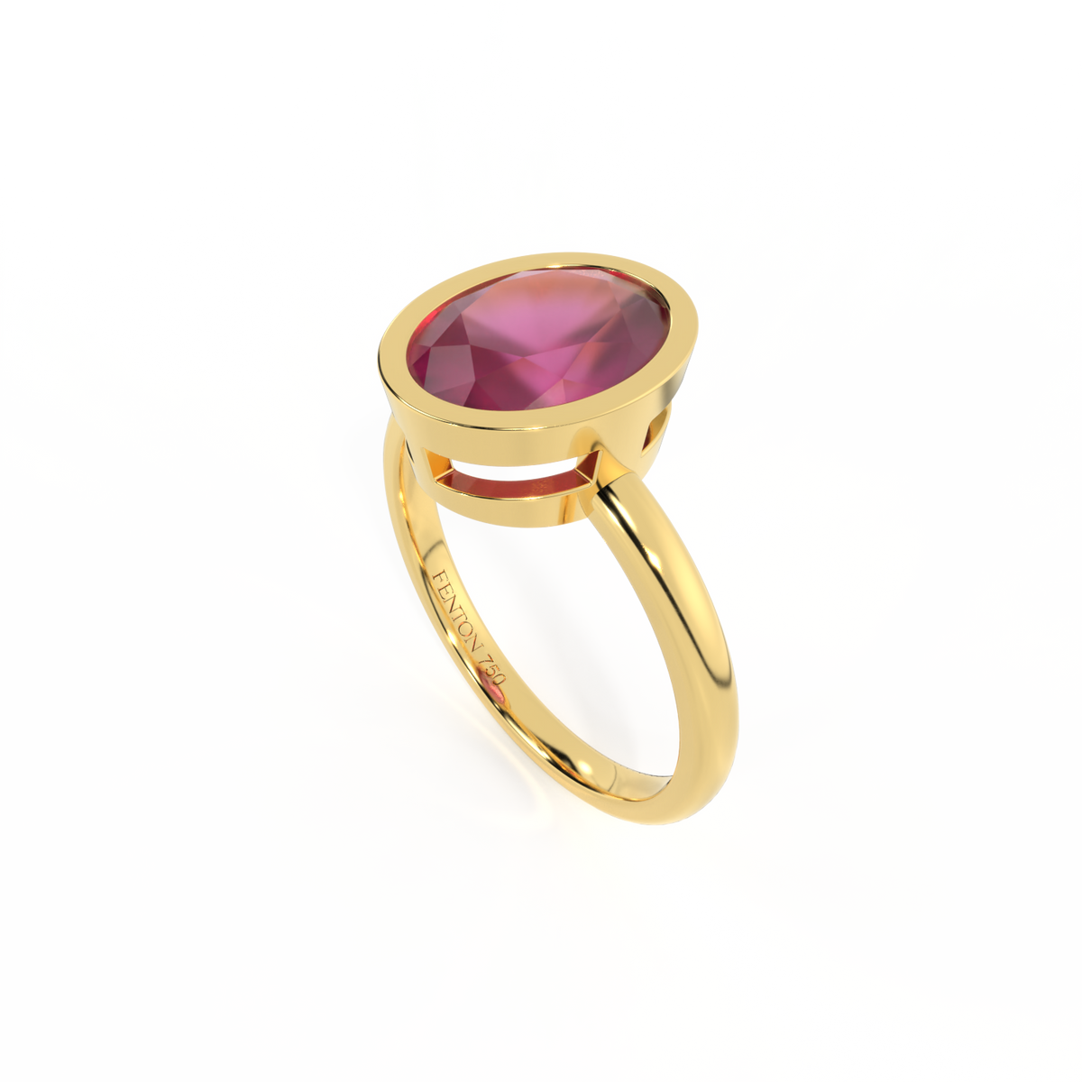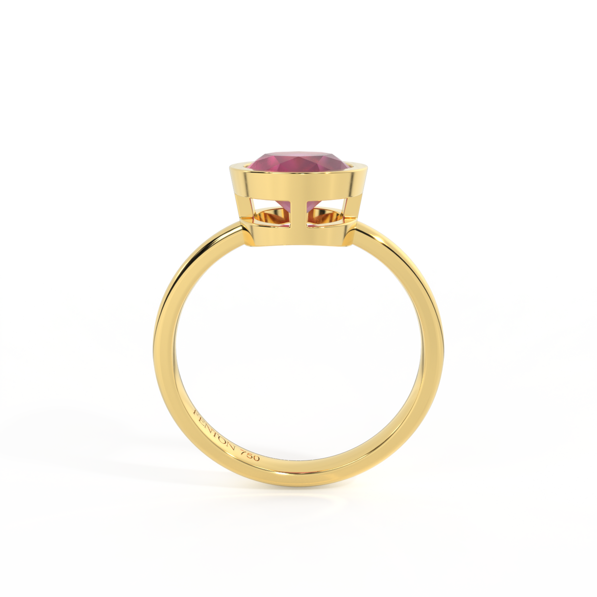 In a nod to the classic prong settings of ceremonial rings, open metalwork details are crafted in 18K Yellow Gold, giving The Bezel it’s unique Fenton twist.