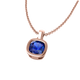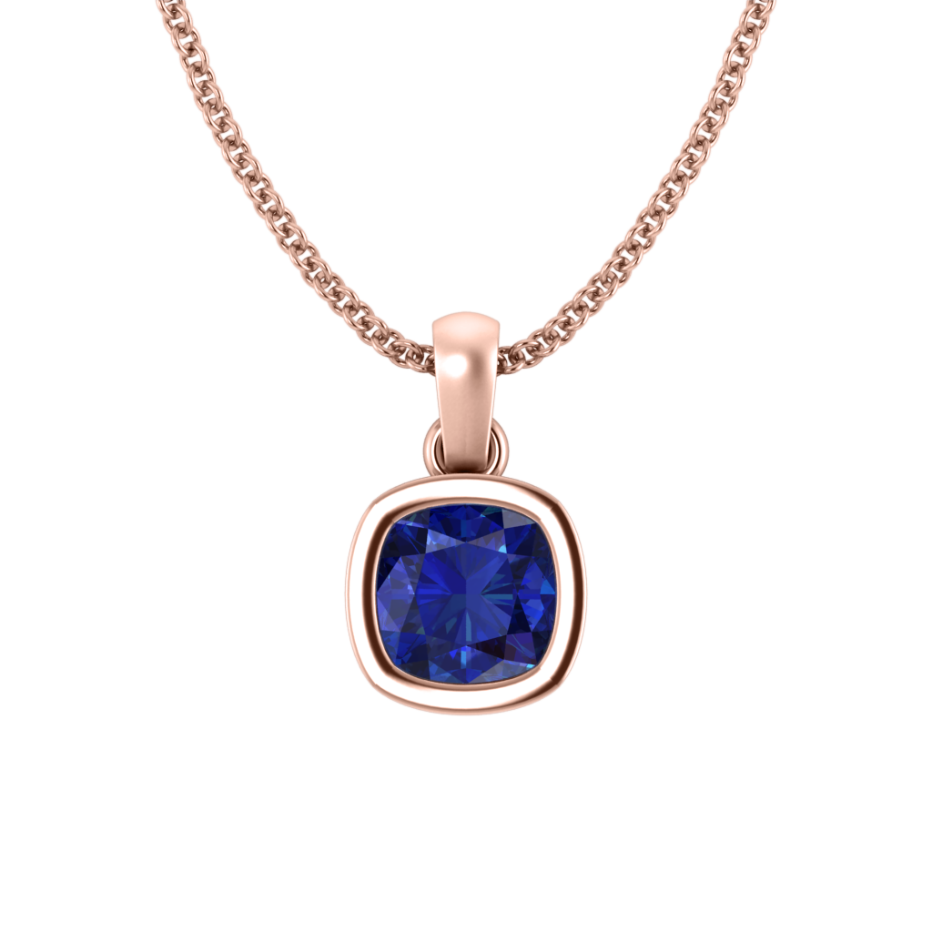 The Bezel Pendant Necklace combines minimalism with modern elegance. The Cushion cut Blue Sapphire pendant is bezel-set in a 18K Rose Gold rim and effortlessly balances on a matching chain.