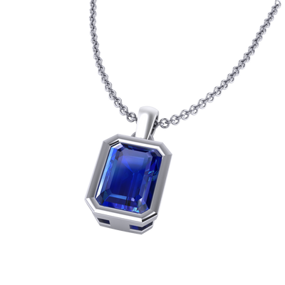 The Bezel Pendant Necklace combines minimalism with modern elegance. The Emerald cut Blue Sapphire pendant is bezel-set in a 18K White Gold rim and effortlessly balances on a matching chain.