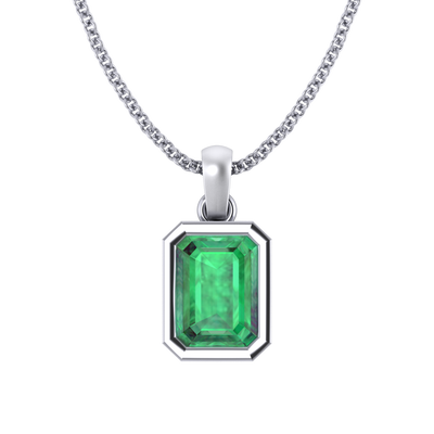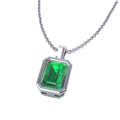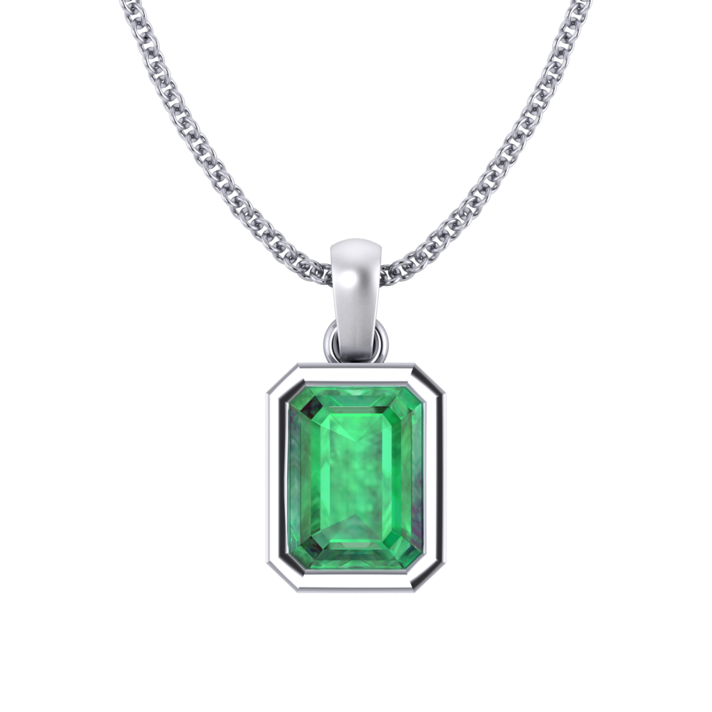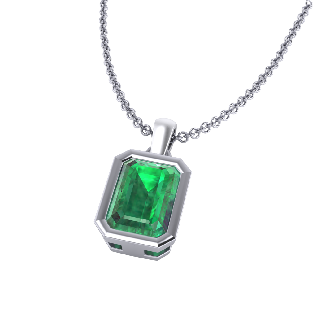 The Bezel Pendant Necklace combines minimalism with modern elegance. The Emerald cut Emerald pendant is bezel-set in a 18K White Gold rim and effortlessly balances on a matching chain.