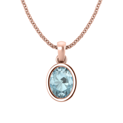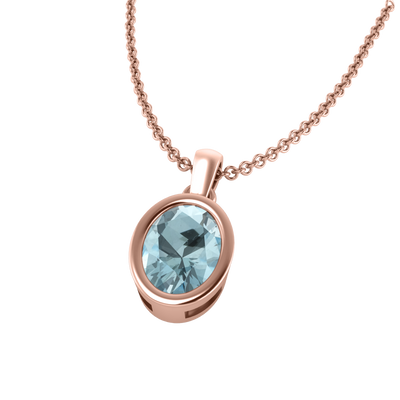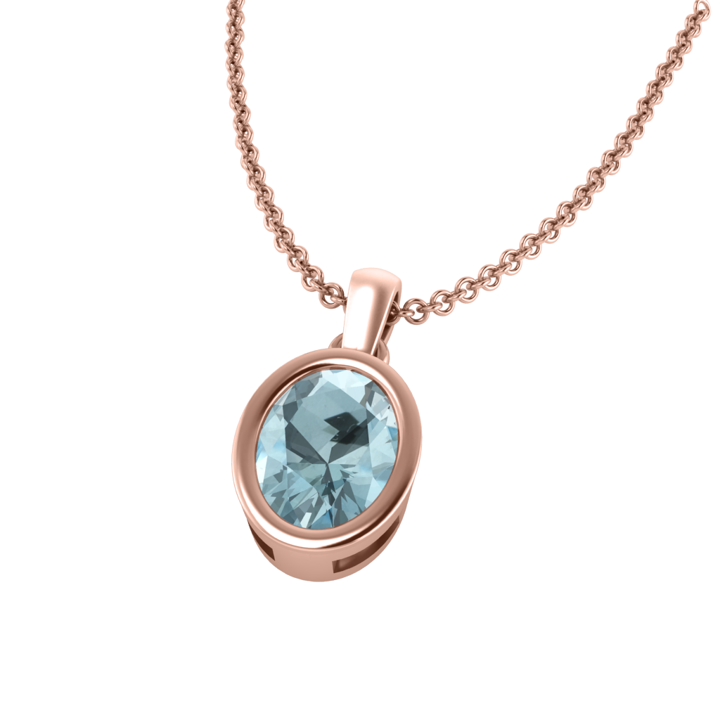 The Bezel Pendant Necklace combines minimalism with modern elegance. The Oval cut Aquamarine pendant is bezel-set in a 18K Rose Gold rim and effortlessly balances on a matching chain.