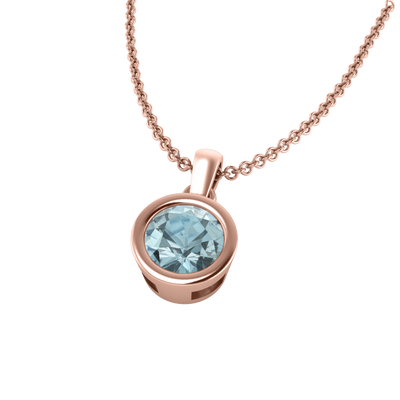 The Bezel Pendant Necklace combines minimalism with modern elegance. The Round cut Aquamarine pendant is bezel-set in a 18K Rose Gold rim and effortlessly balances on a matching chain.