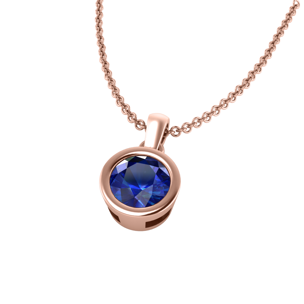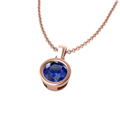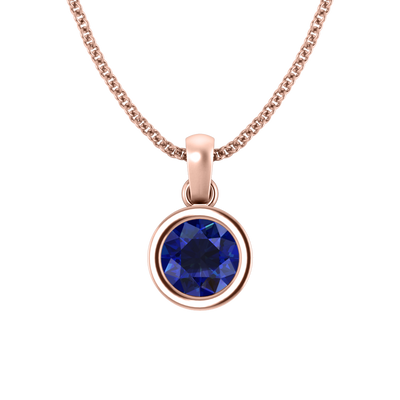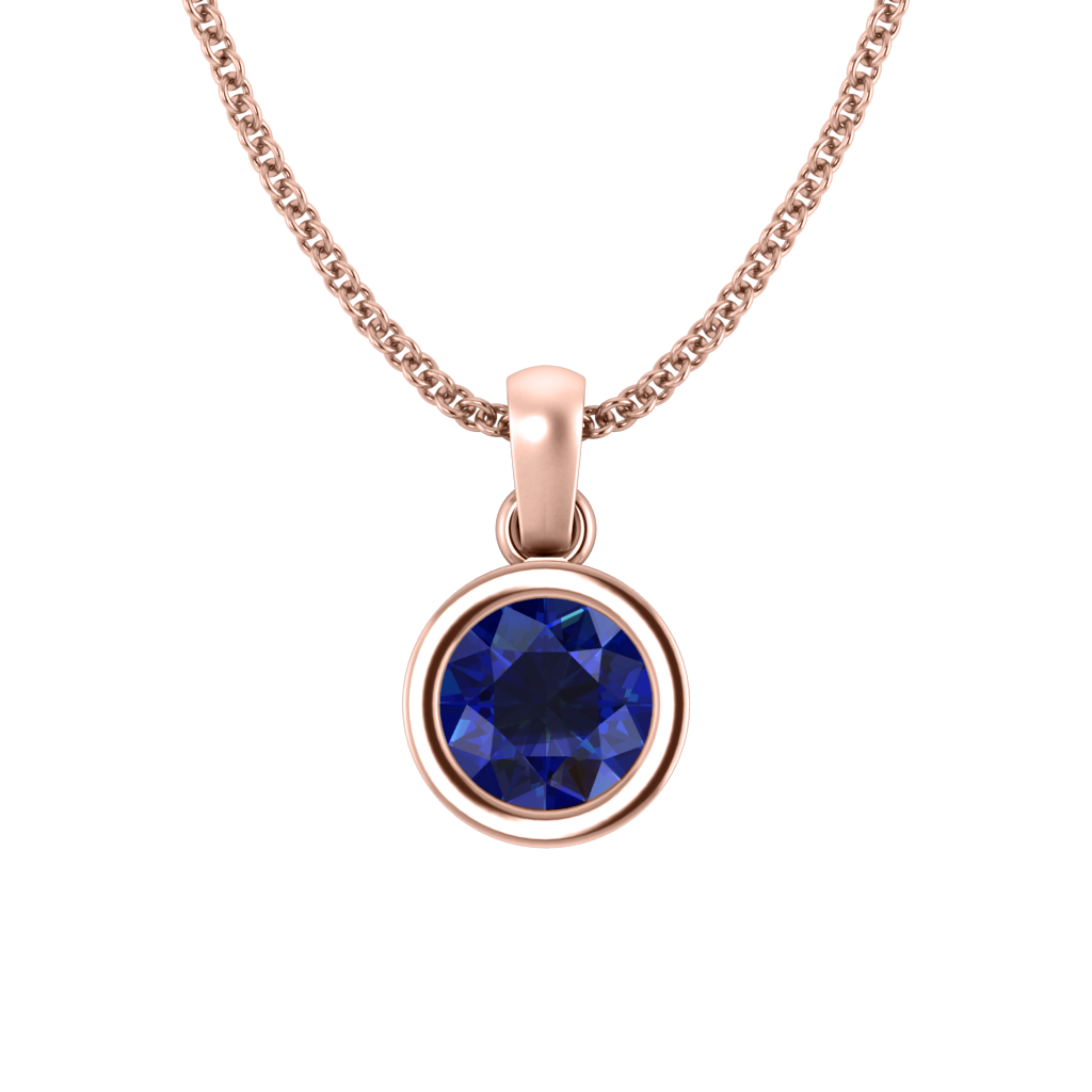 The Bezel Pendant Necklace combines minimalism with modern elegance. The Round cut Blue Sapphire pendant is bezel-set in a 18K Rose Gold rim and effortlessly balances on a matching chain.