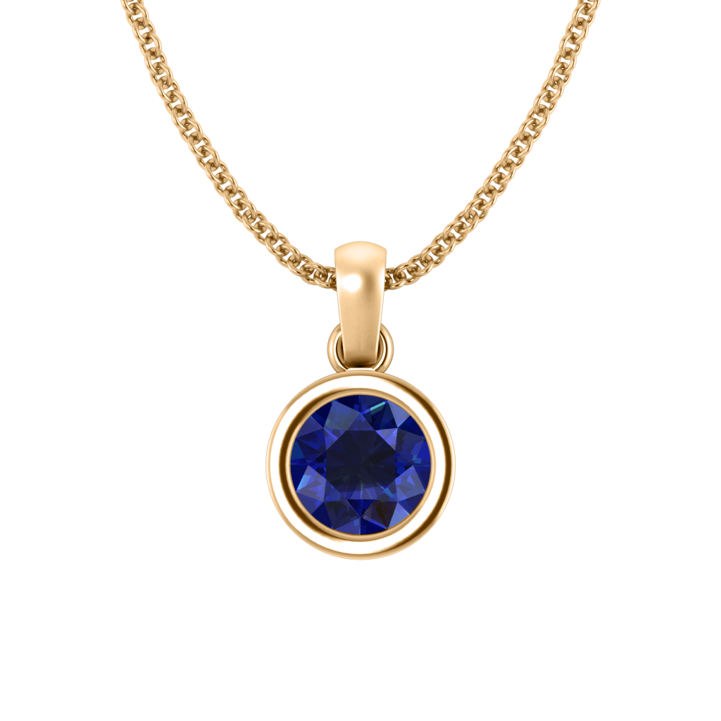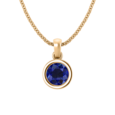 The Bezel Pendant Necklace combines minimalism with modern elegance. The Round cut Blue Sapphire pendant is bezel-set in a 18K Yellow Gold rim and effortlessly balances on a matching chain.