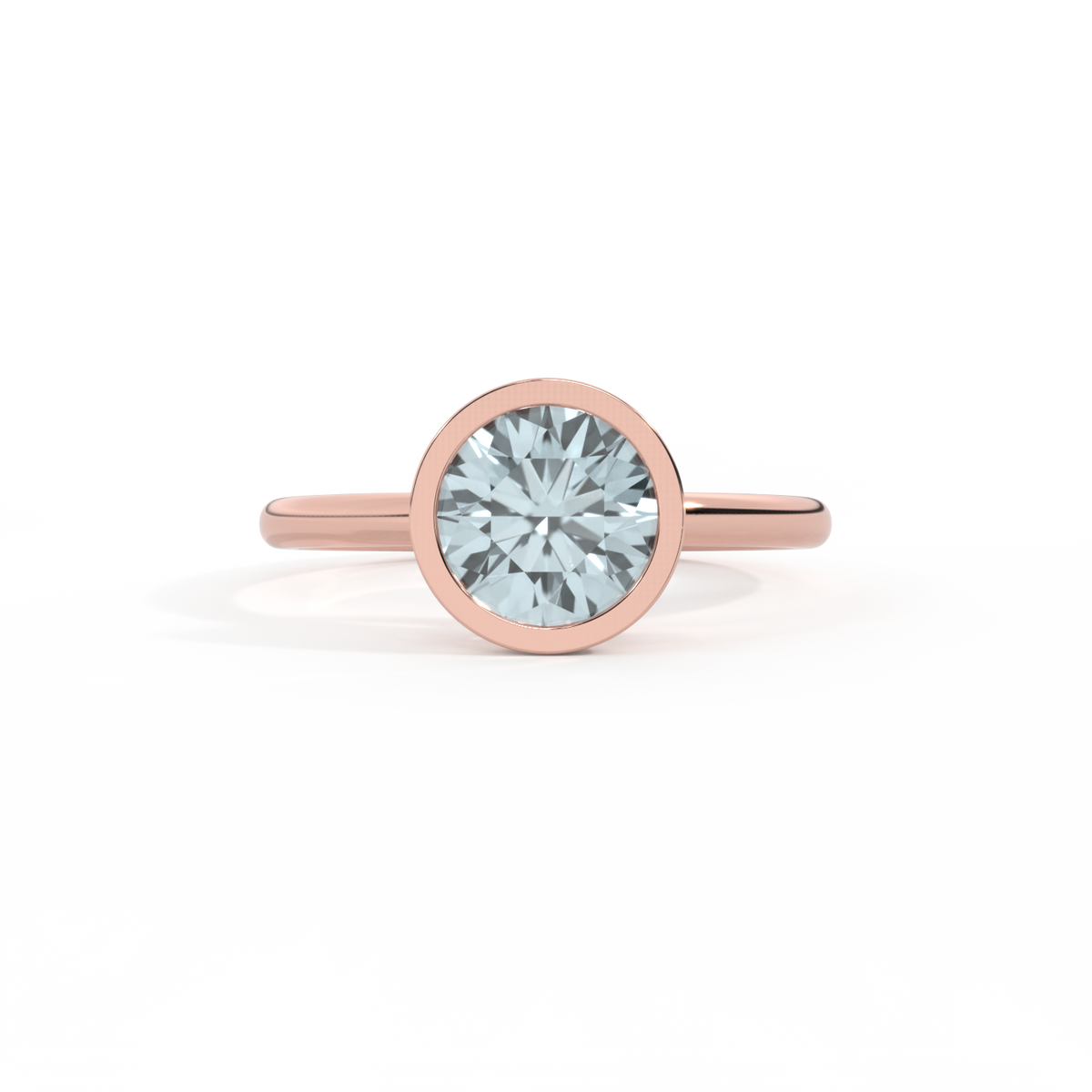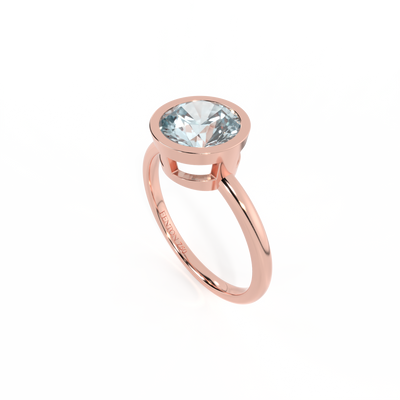 Bezel Round Aquamarine 18K Rose Gold Ring
