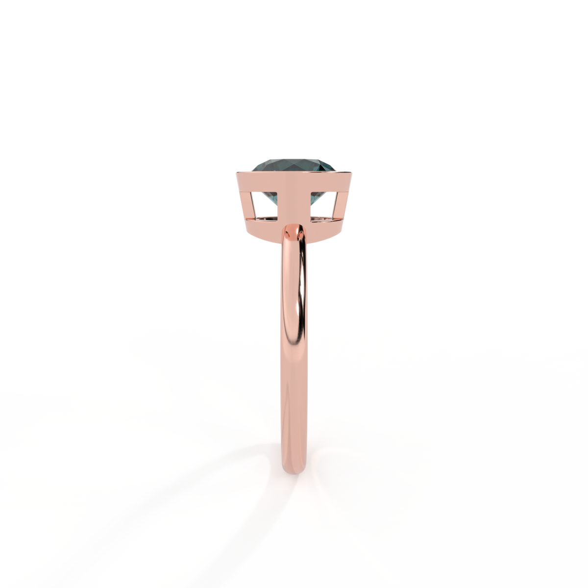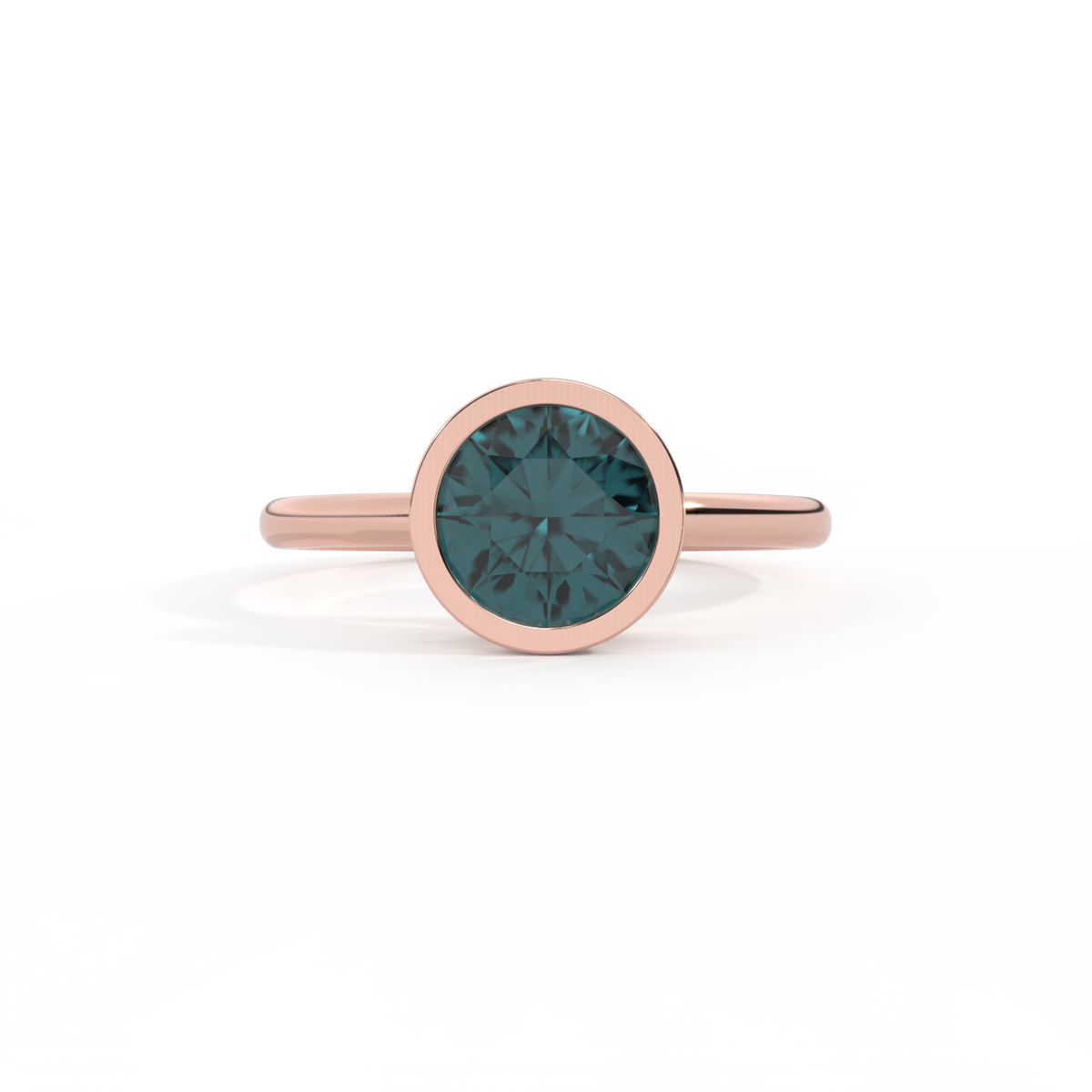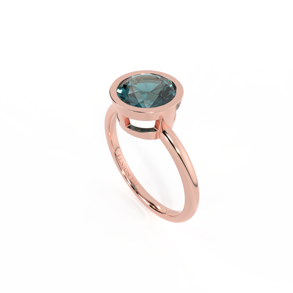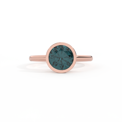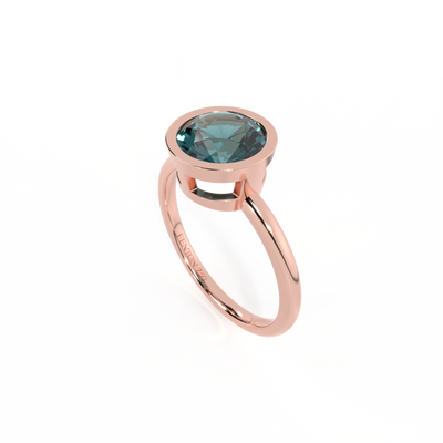 Bezel Round Teal Sapphire 18K Rose Gold Ring