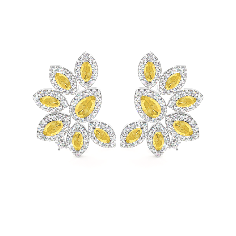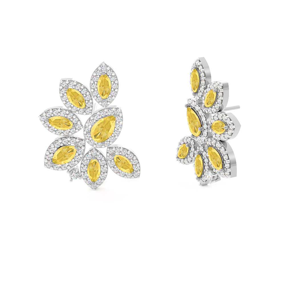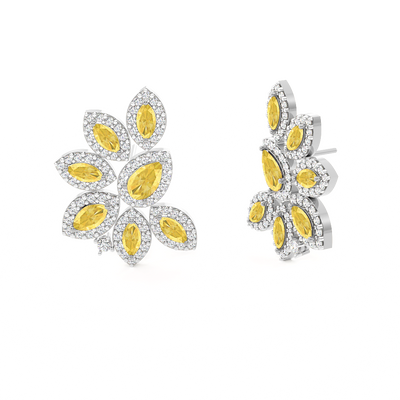 Cluster Stud Yellow Sapphire Earrings