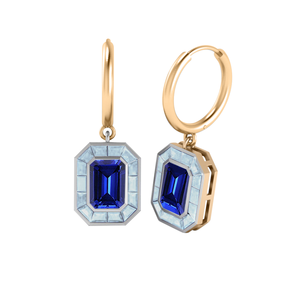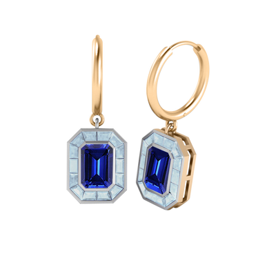 Deco Drop Emerald Blue Sapphire 18K Rose Gold Earrings