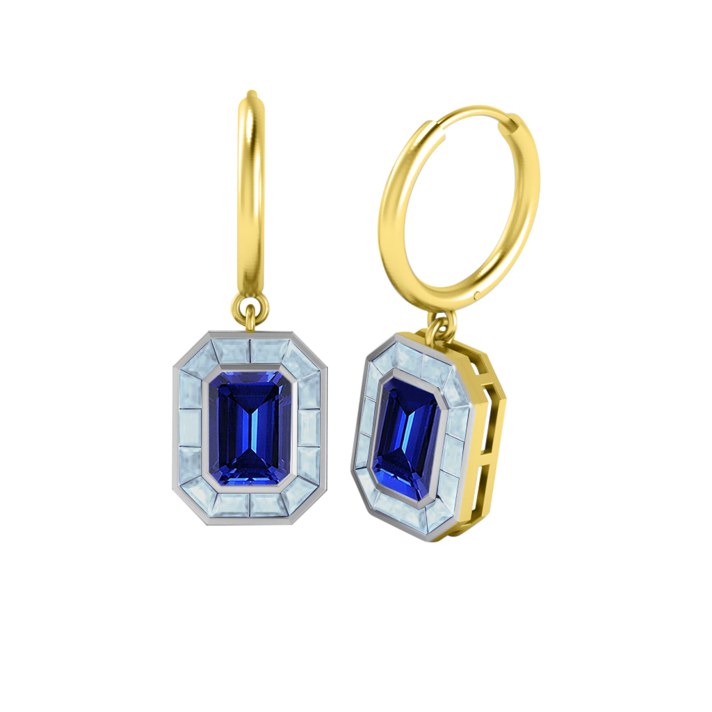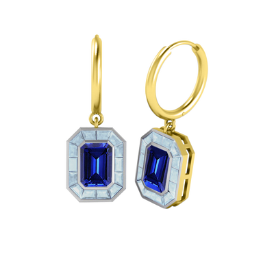 Deco Drop Emerald Blue Sapphire 18K Yellow Gold Earrings