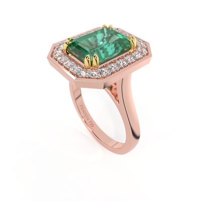Deco Emerald Emerald 18K Rose Gold Ring