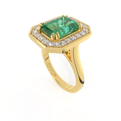 Deco Emerald Emerald 18K Yellow Gold Ring