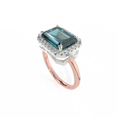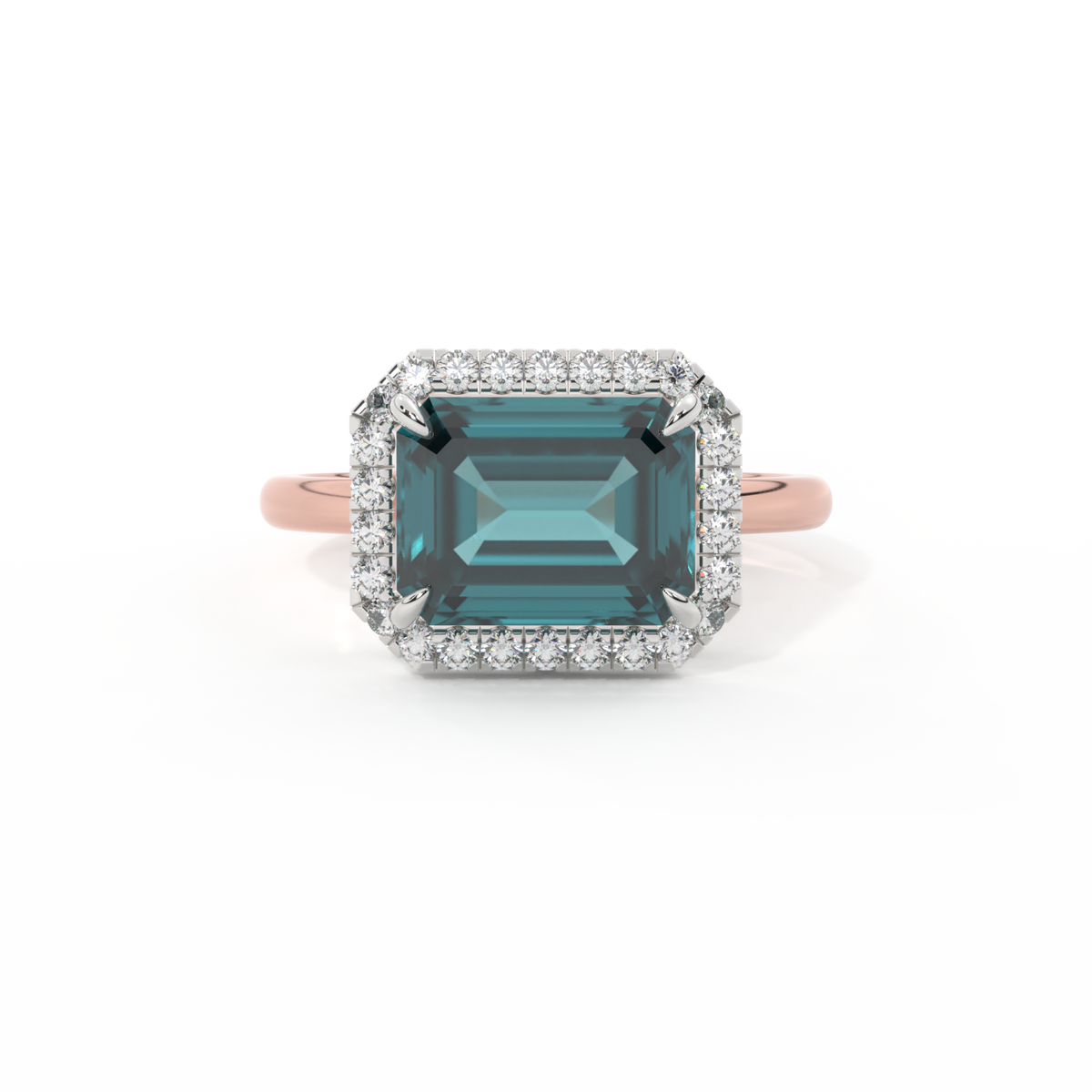 East West Emerald Teal Sapphire 18K Rose Gold Ring
