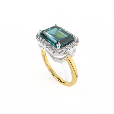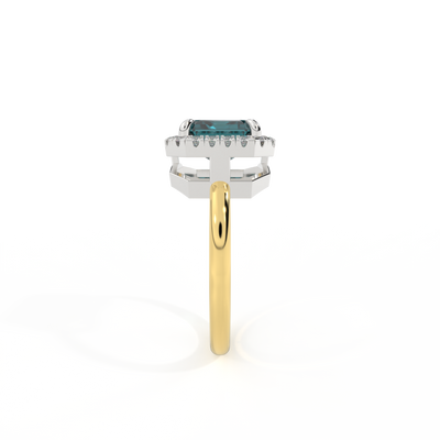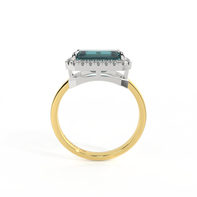 East West Emerald Teal Sapphire 18K Yellow Gold Ring