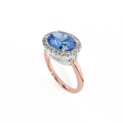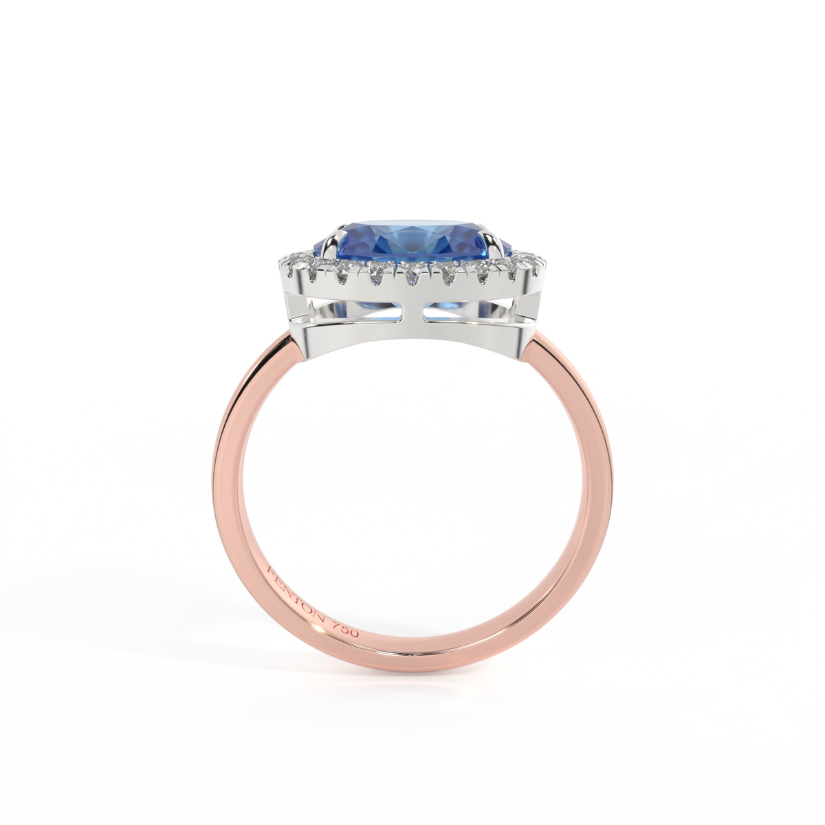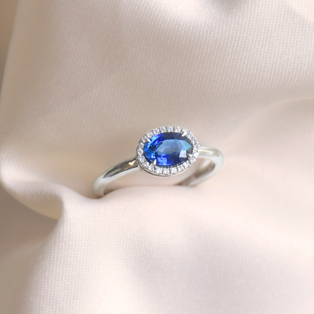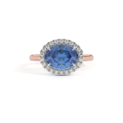 East West Oval Blue Sapphire 18K Rose Gold Ring