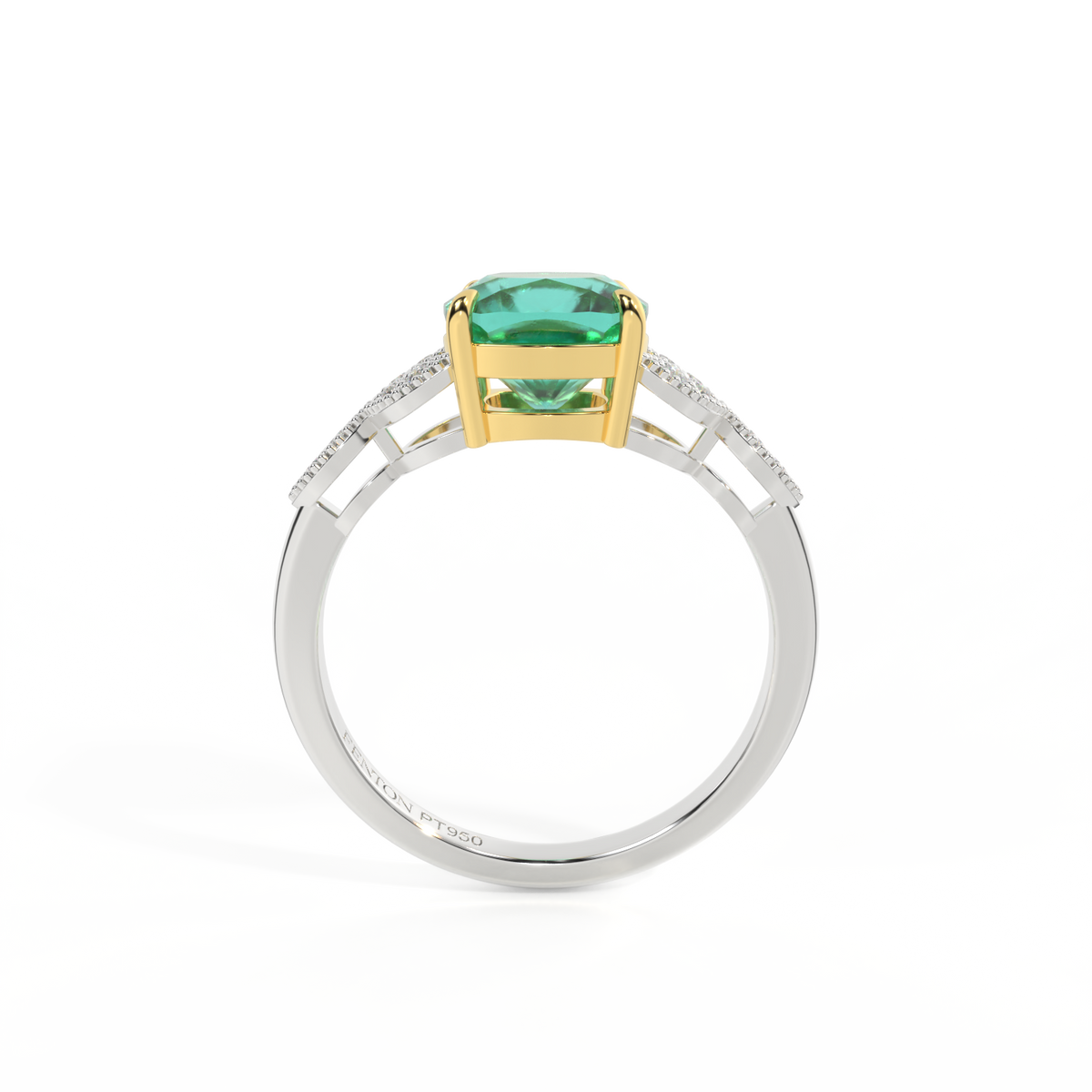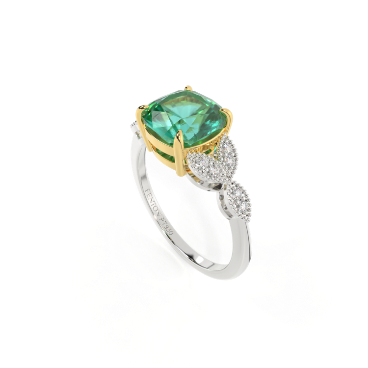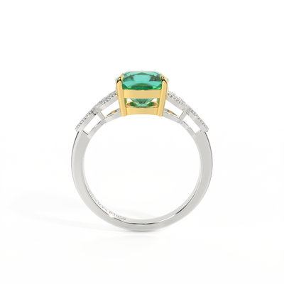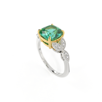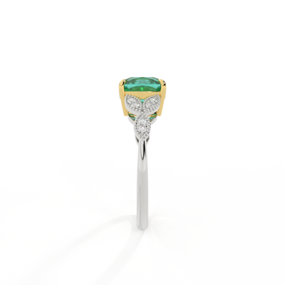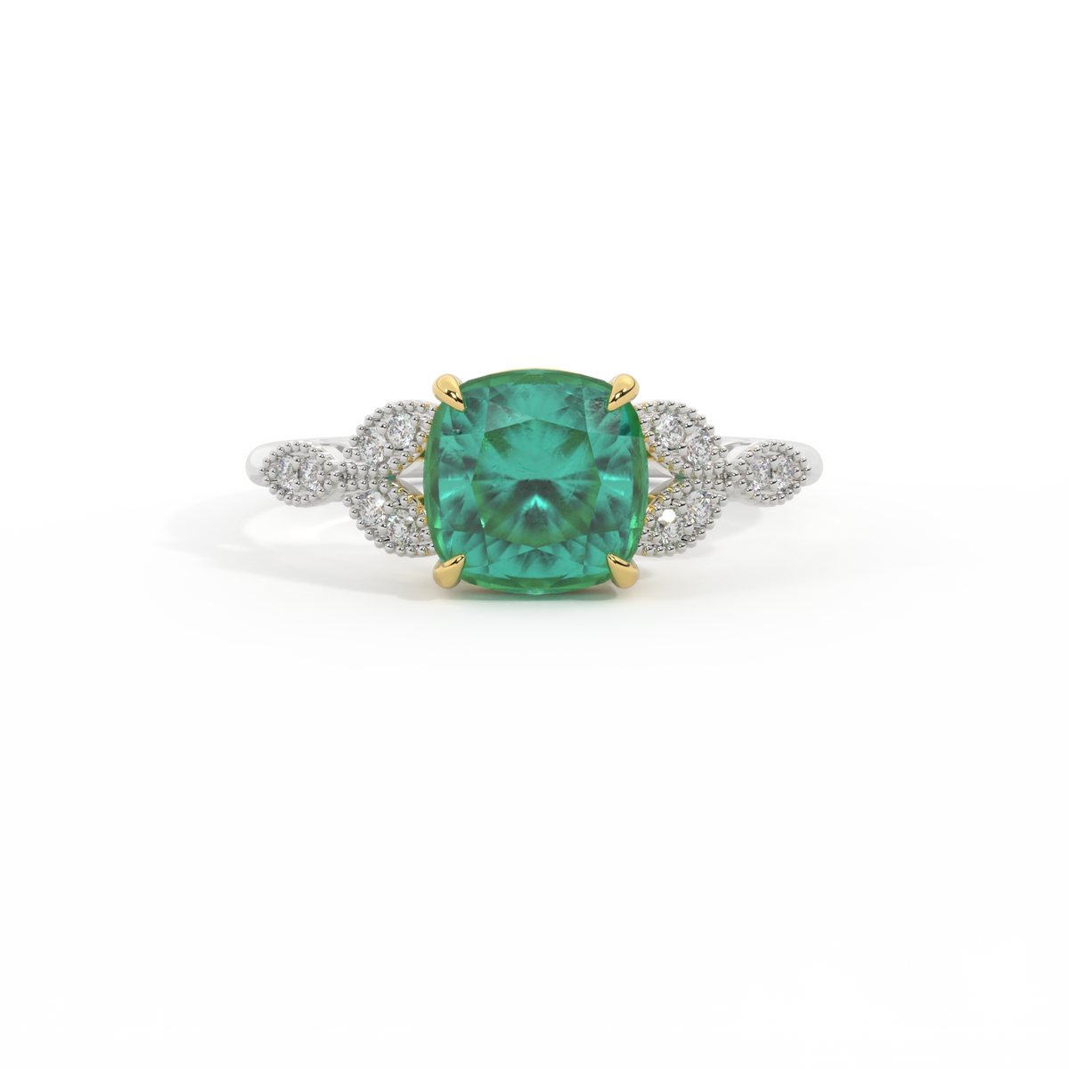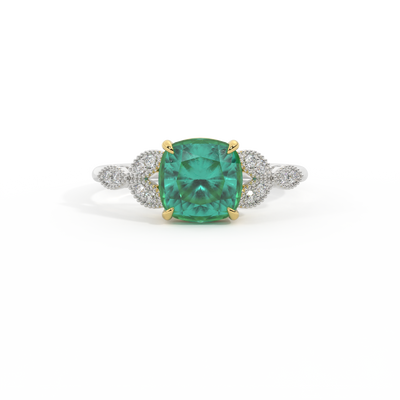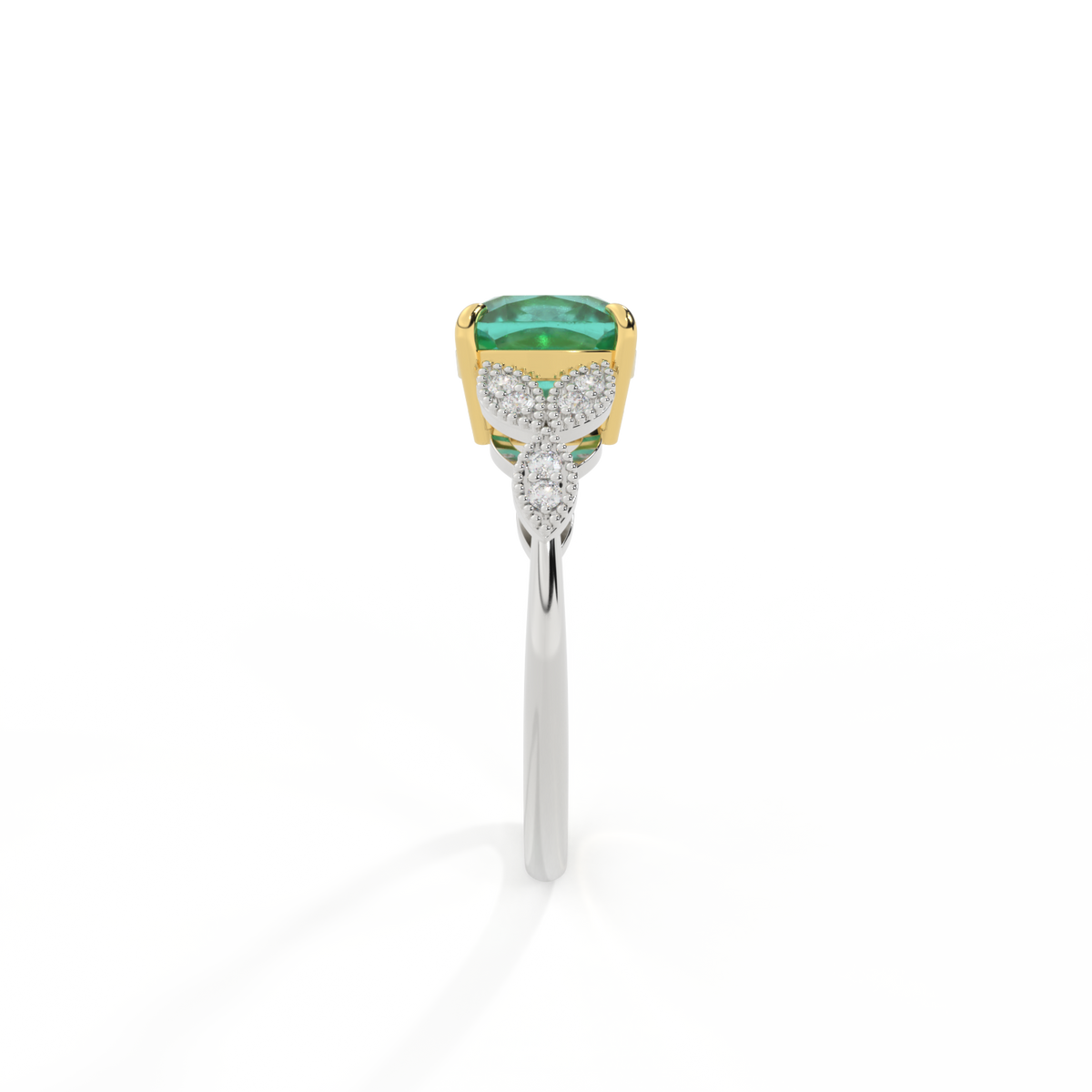 The beauty of a flower, re-imagined for eternity. Inspired by the romance of the Victorian era, this Cushion cut Emerald is accentuated by a duo of delicate diamond-set petals with millegrain detail for an elegant twist on a timeless classic.