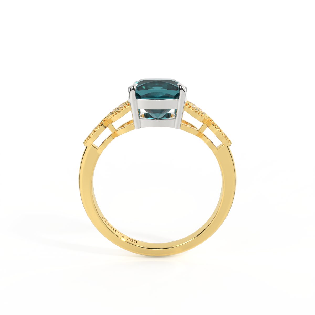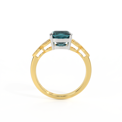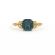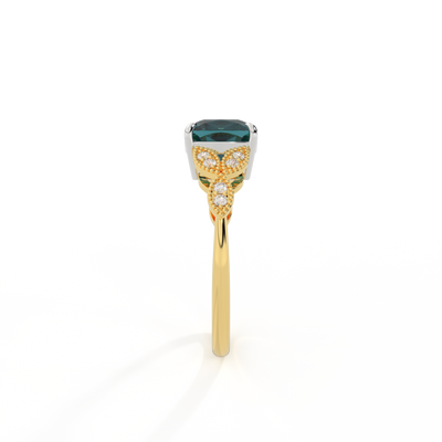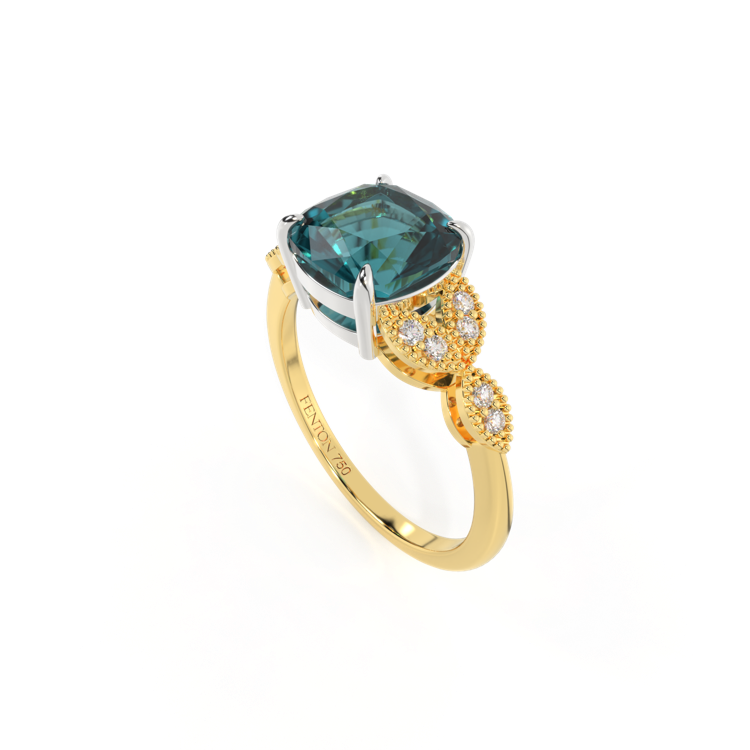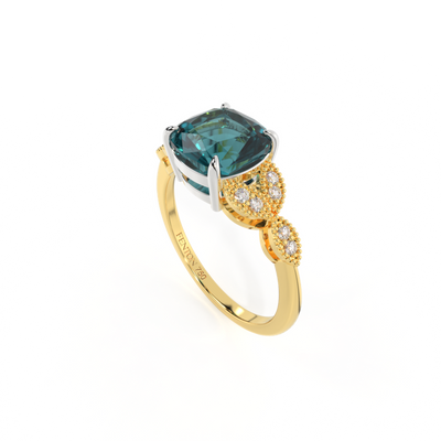 Floral Cushion Teal Sapphire 18K Yellow Gold Ring