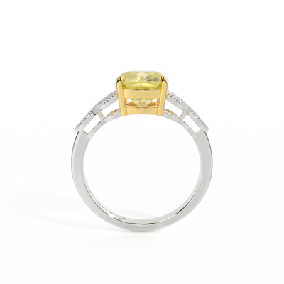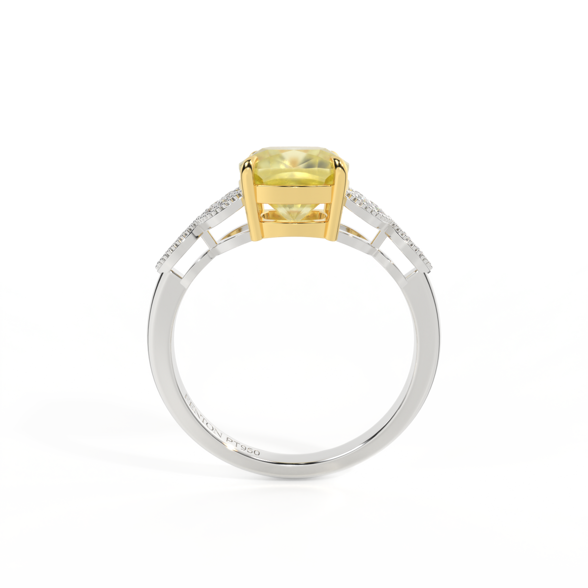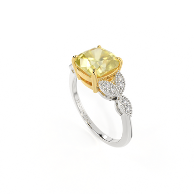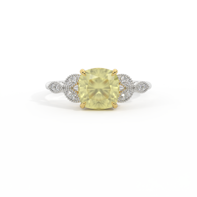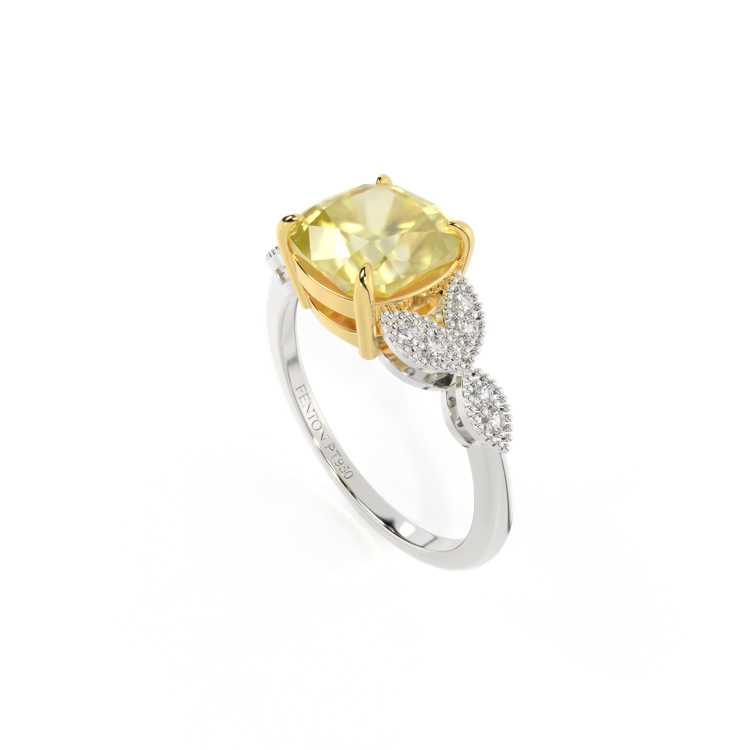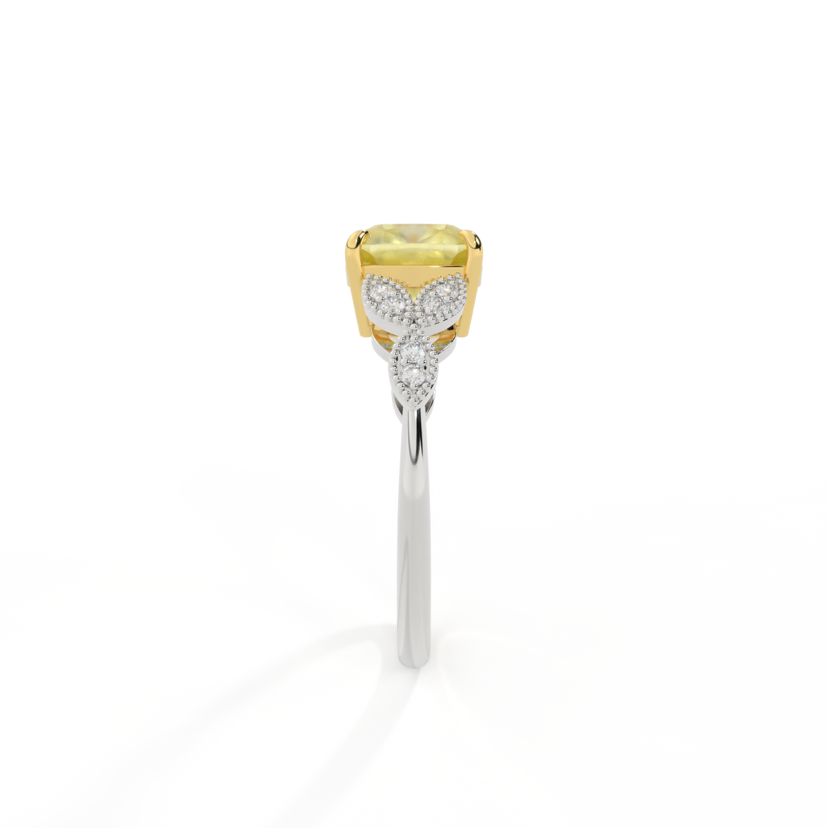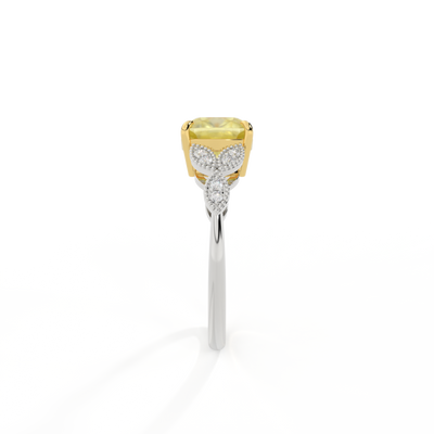 The beauty of a flower, re-imagined for eternity. Inspired by the romance of the Victorian era, this Cushion cut Yellow Sapphire is accentuated by a duo of delicate diamond-set petals with millegrain detail for an elegant twist on a timeless classic.
