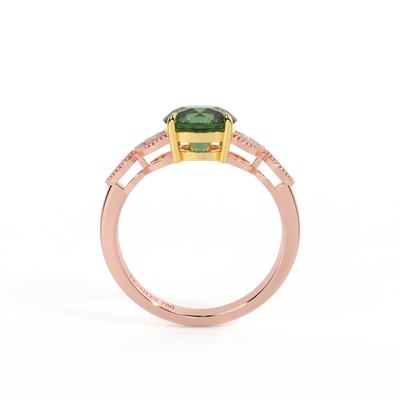 Floral Round Green Sapphire 18K Rose Gold Ring