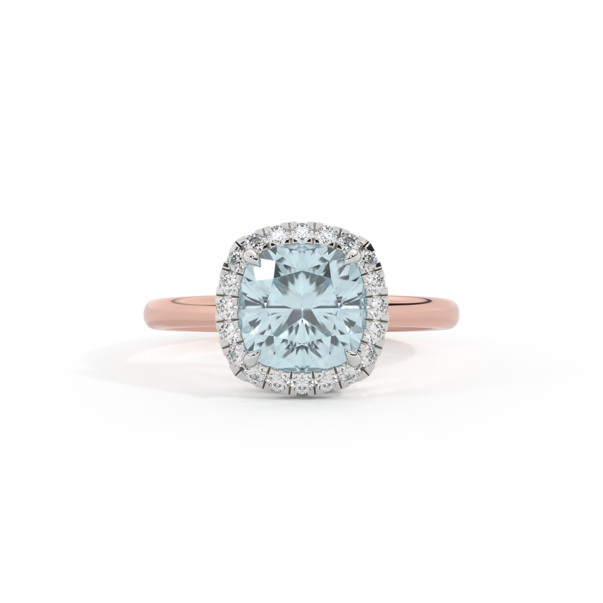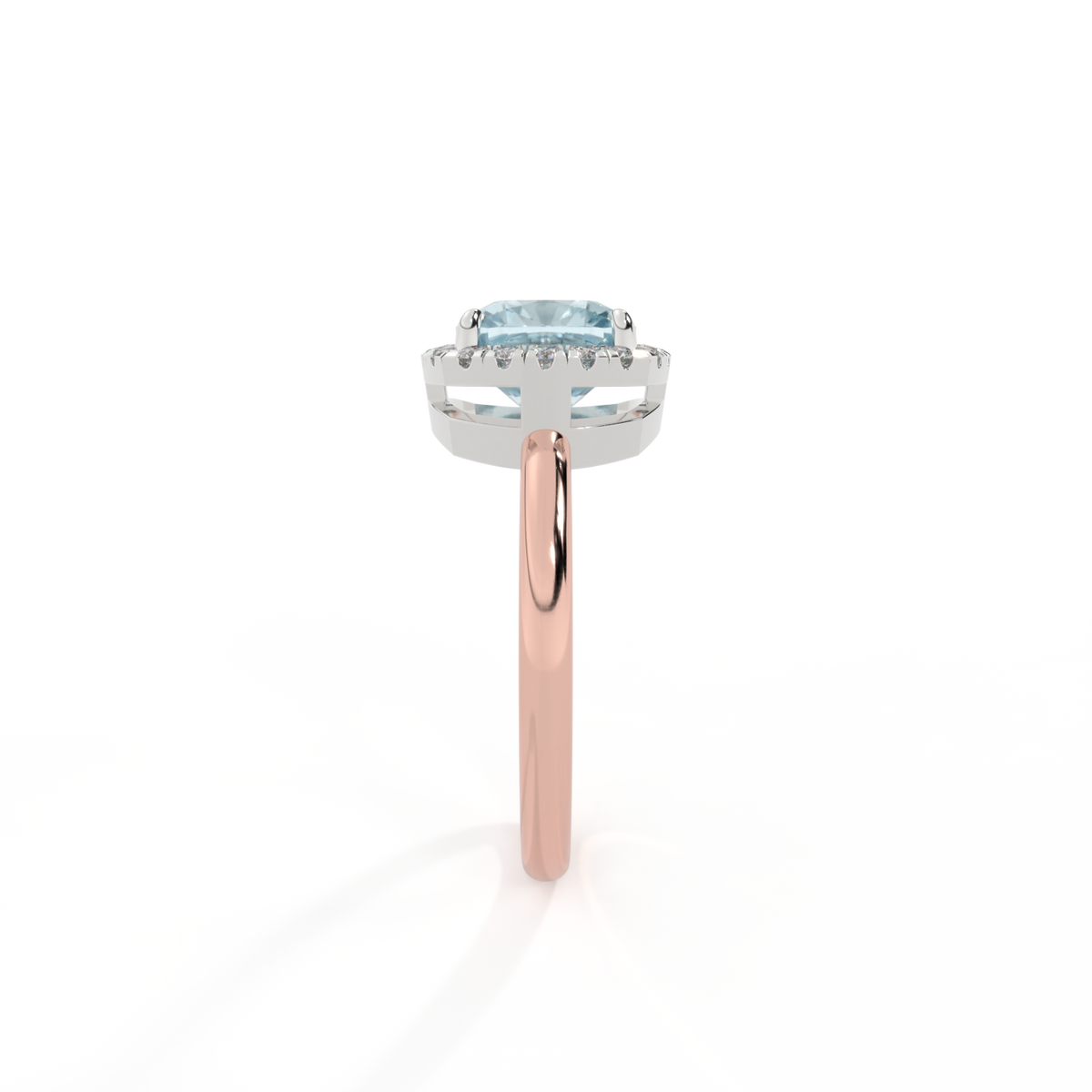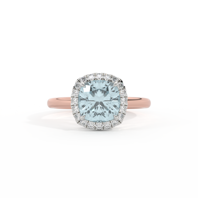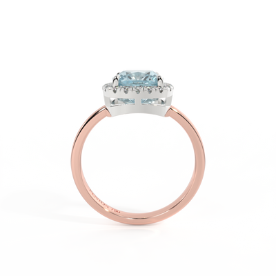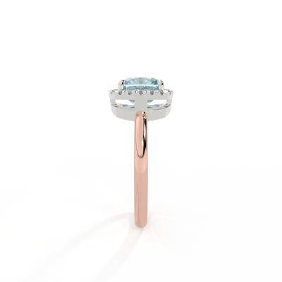 Halo Cushion Aquamarine 18K Rose Gold Ring