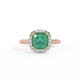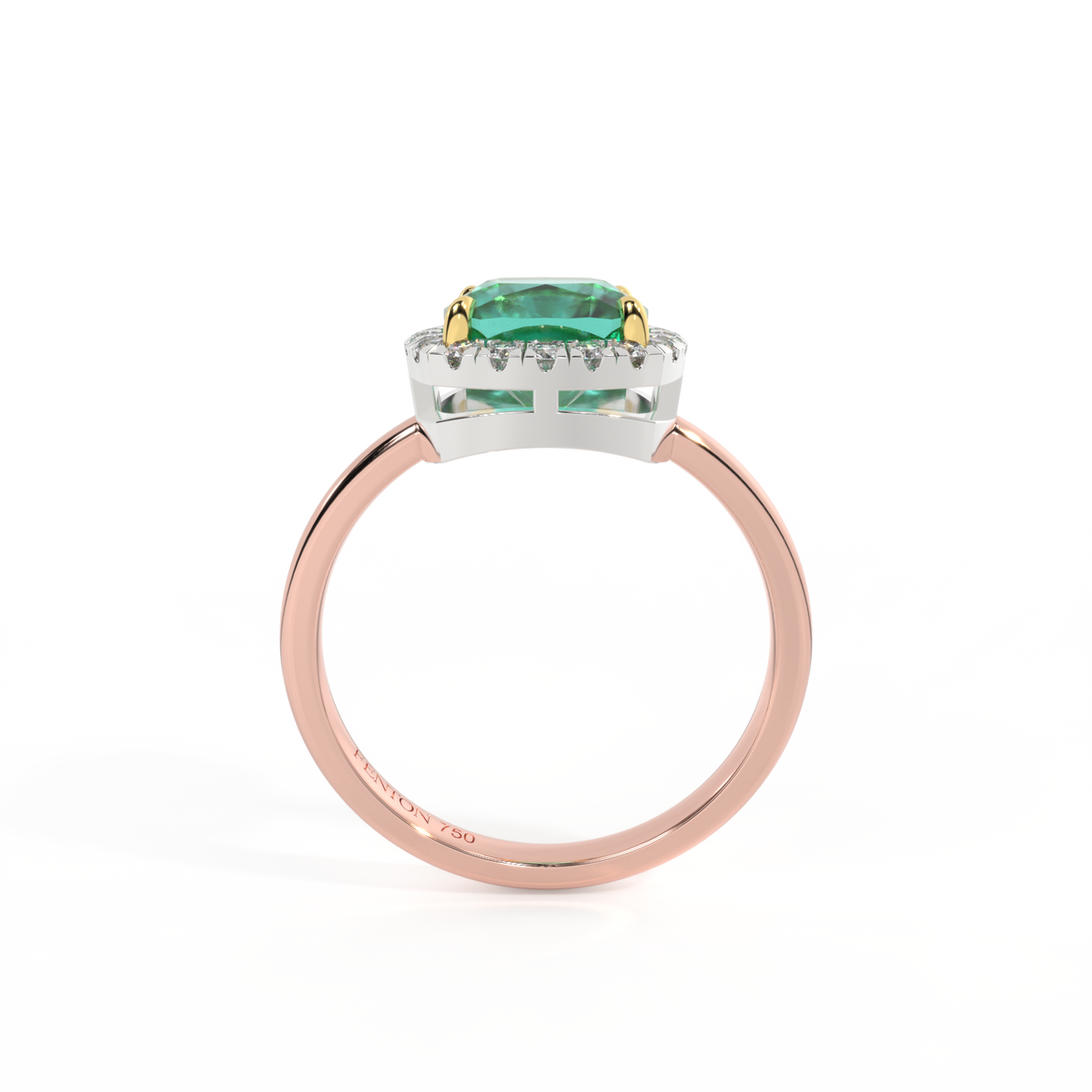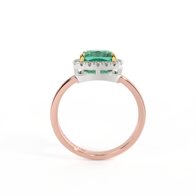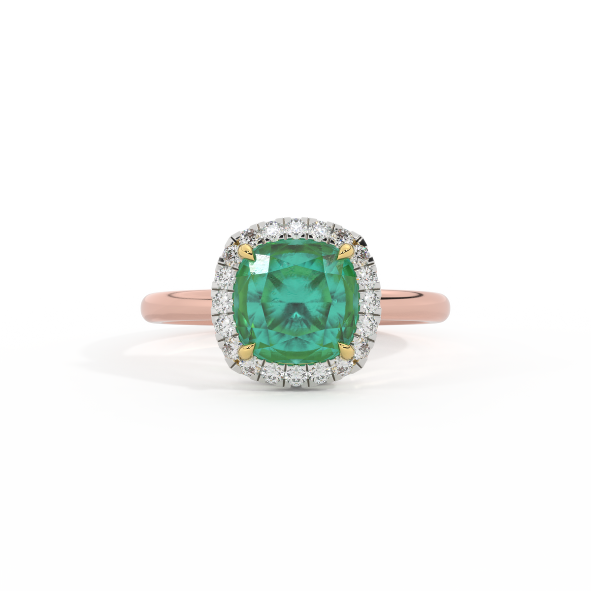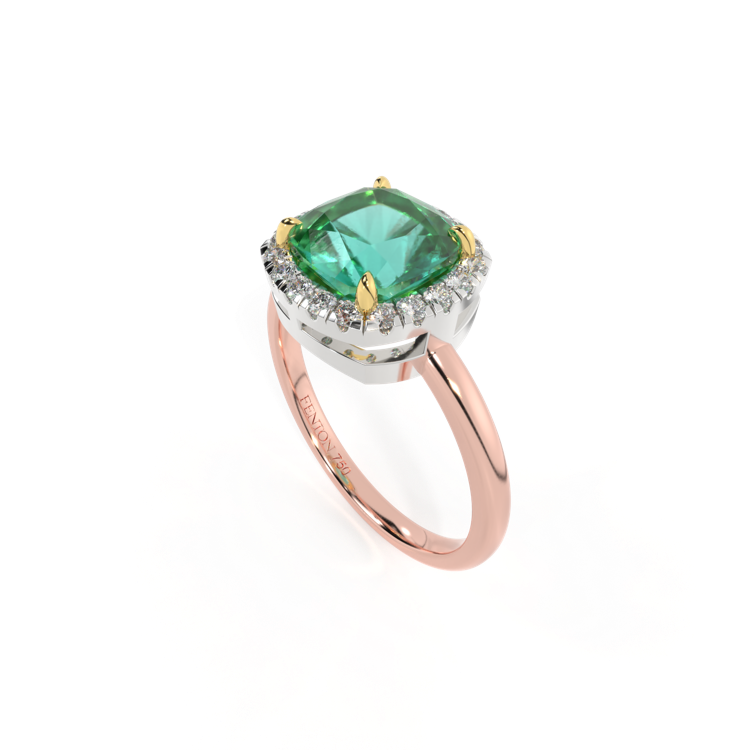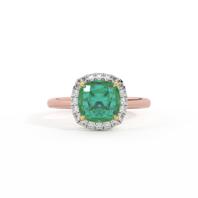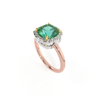 All of our rings are available in blue sapphire, ruby, emerald, pink sapphire, yellow sapphire and aquamarine. We offer three metals, 18K rose gold, 18K yellow gold and platinum. The center stones are available in four cuts, round, cushion, oval and emerald cut and five sizes for each cut and style.
