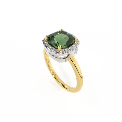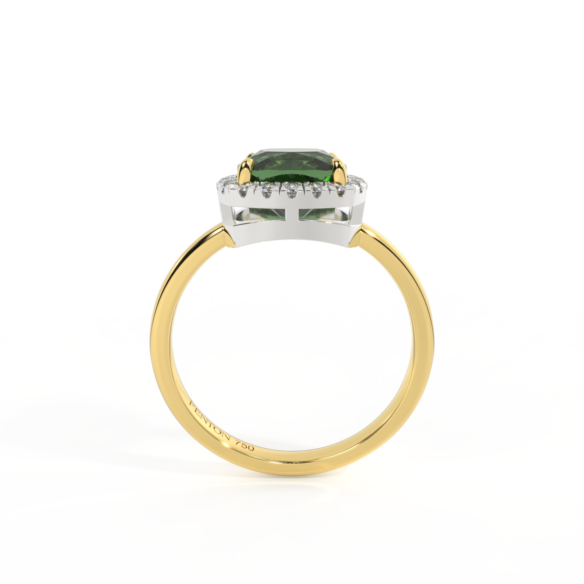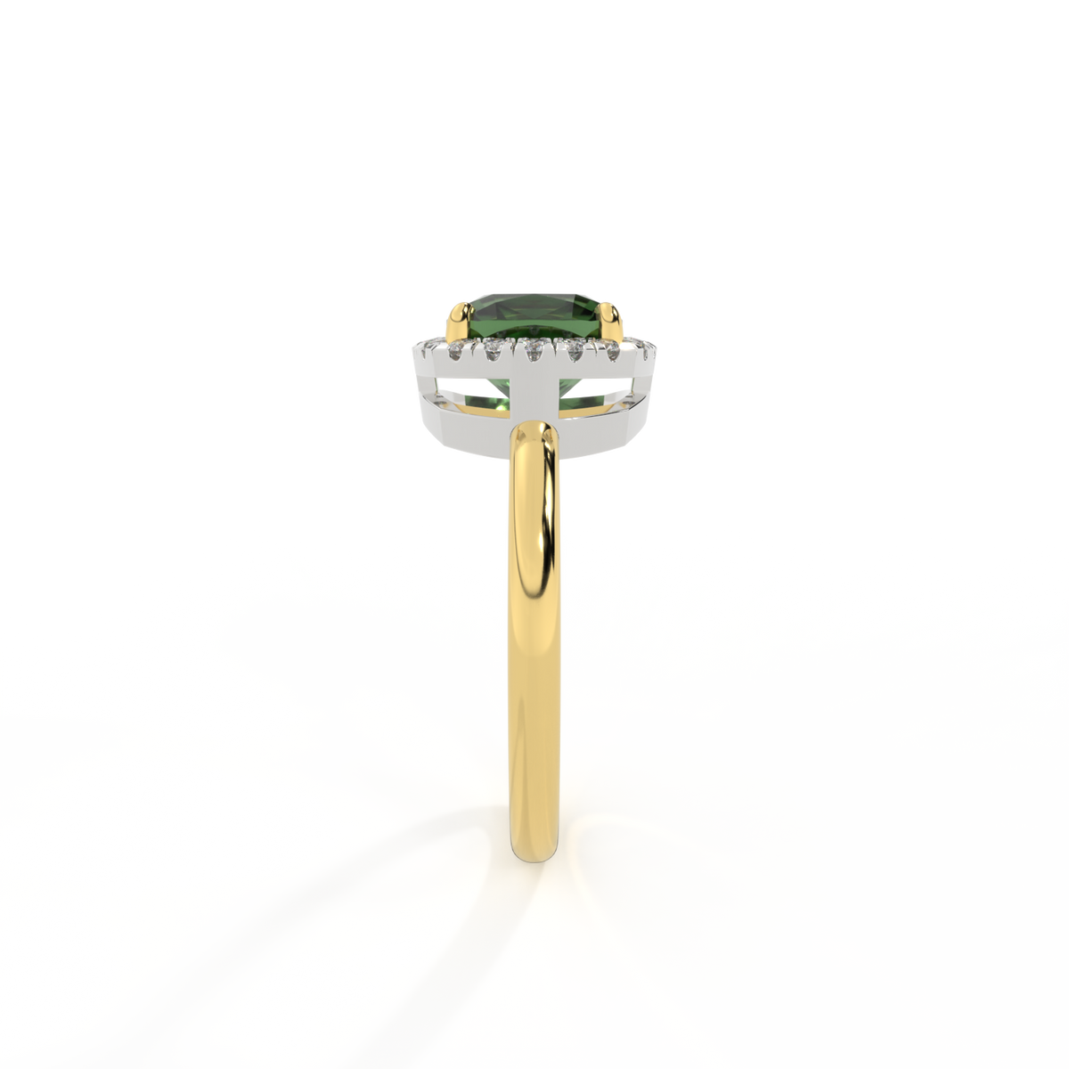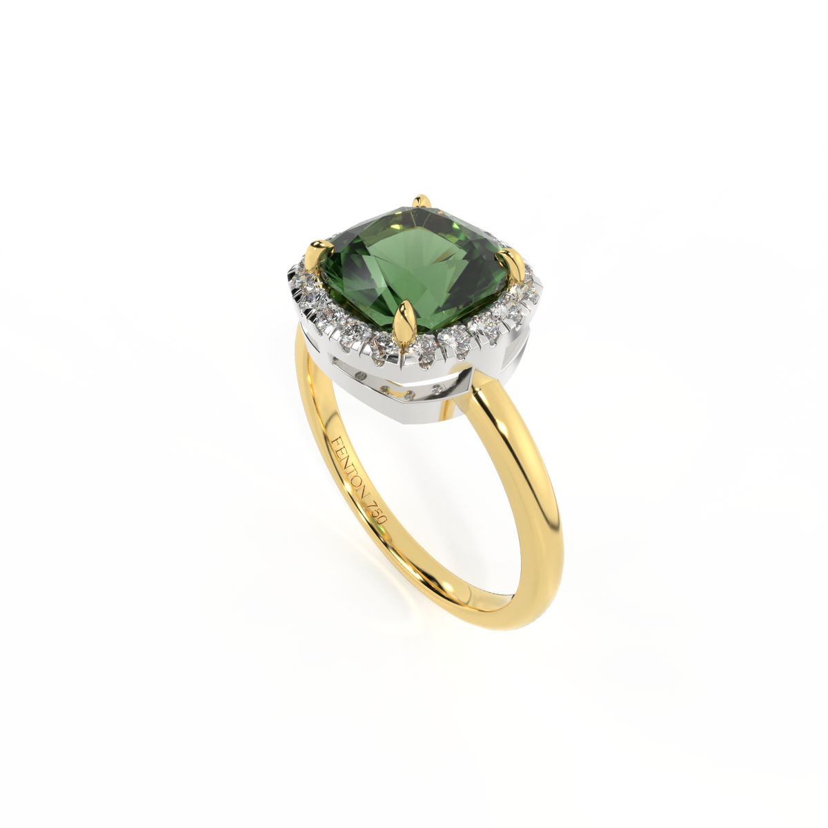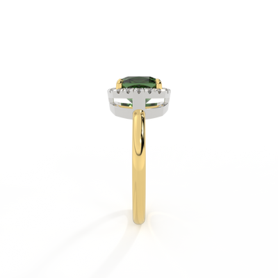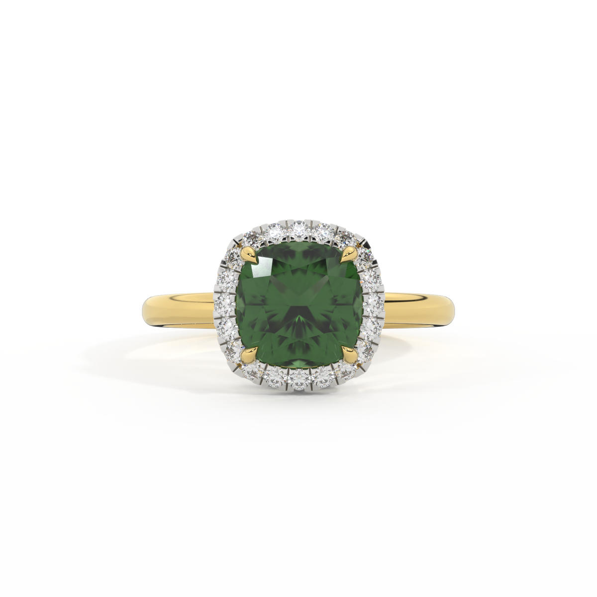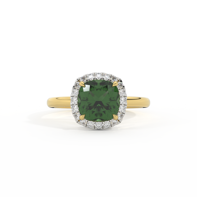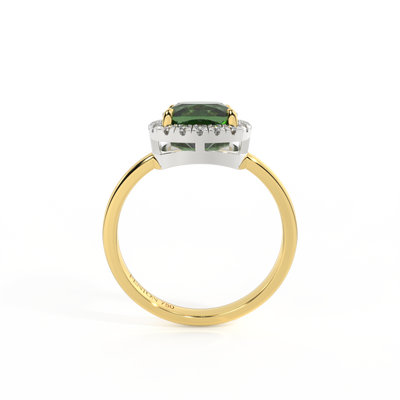 Halo Cushion Green Sapphire 18K Yellow Gold Ring